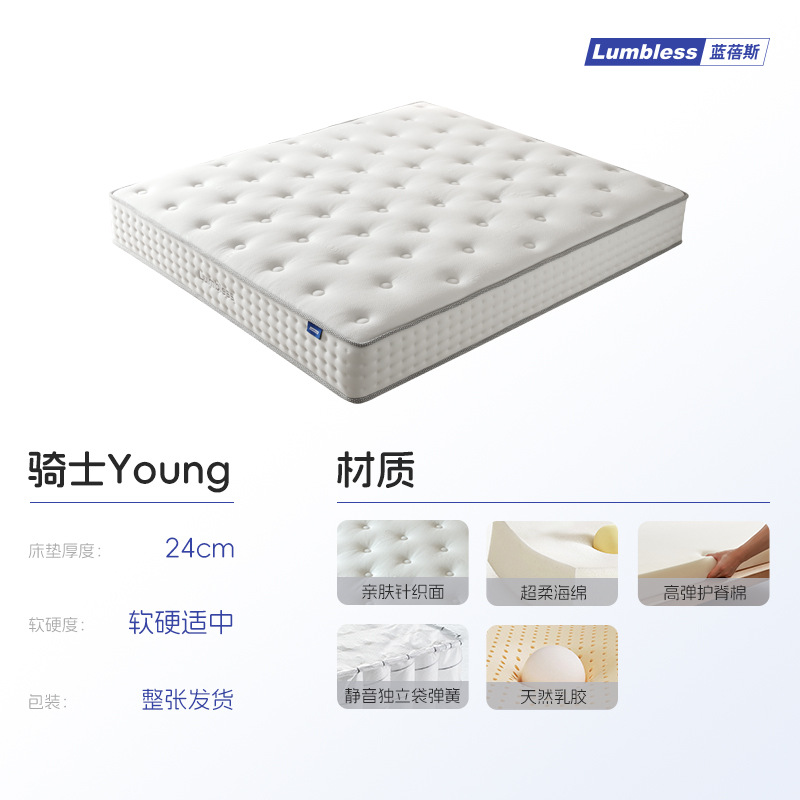 骑士young【全家适用/24cm】:超柔海绵+天然乳胶+独立袋弹簧 规格