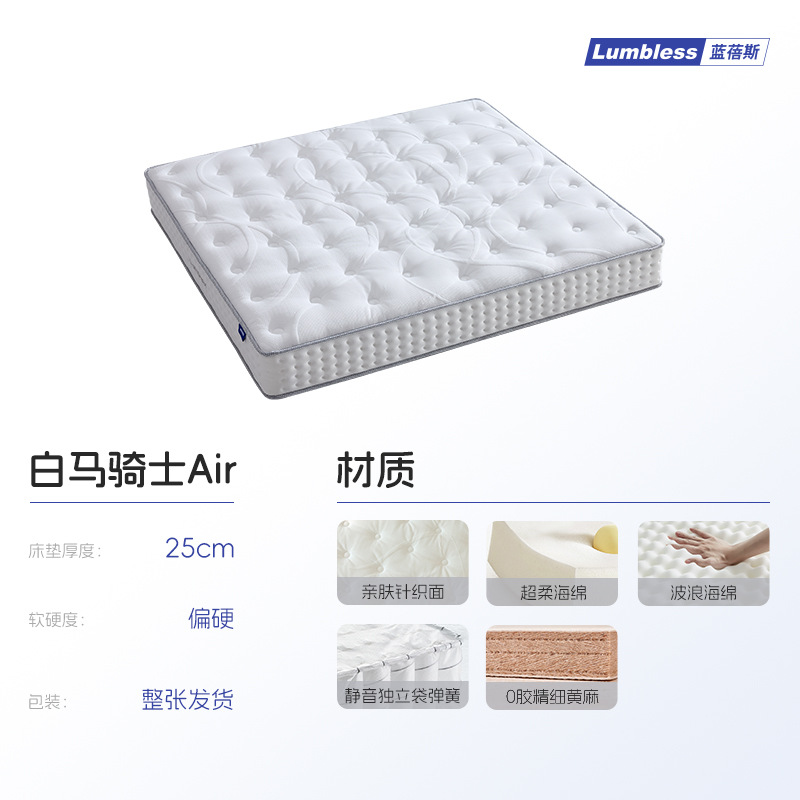 白马骑士air【黄麻护脊版/25cm】:波浪海绵+精细黄麻+独立袋弹簧