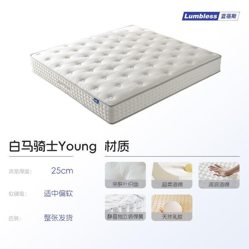 白马骑士young【适合浅睡人群/25cm】:波浪海绵+乳胶+独立袋弹簧