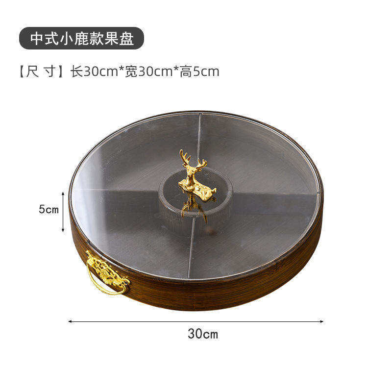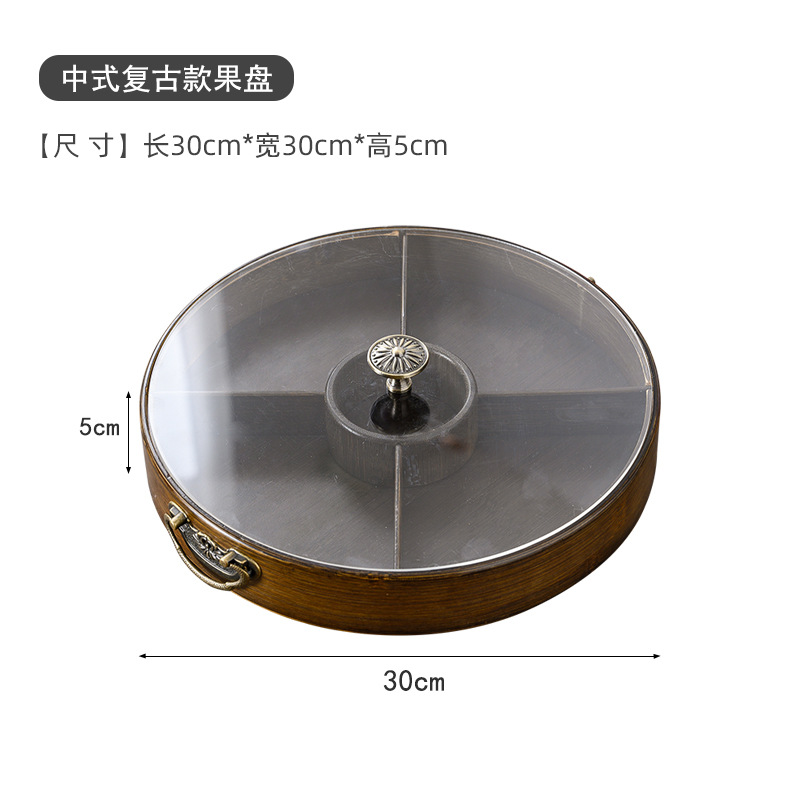 复古色轻奢竹制坚果盘子糕点盘分格带盖子家用茶楼酒店通用