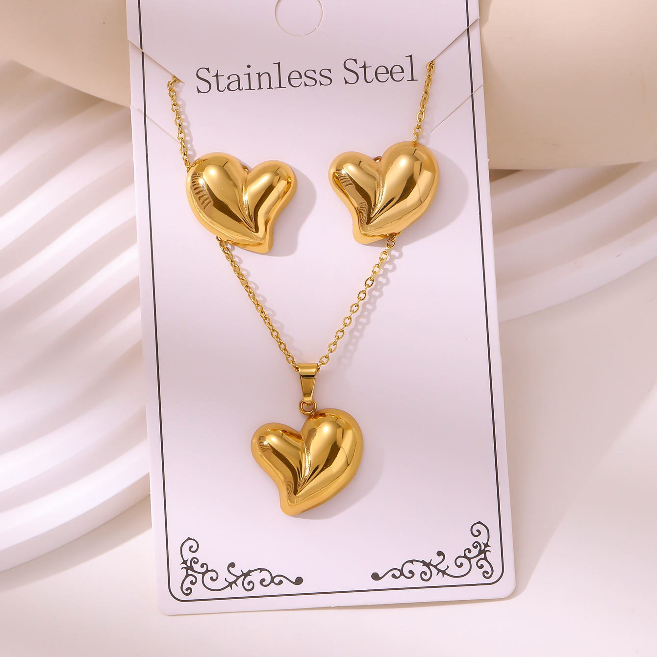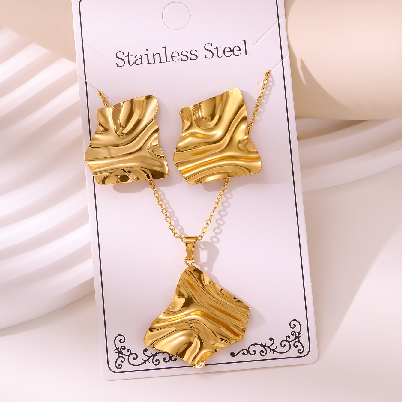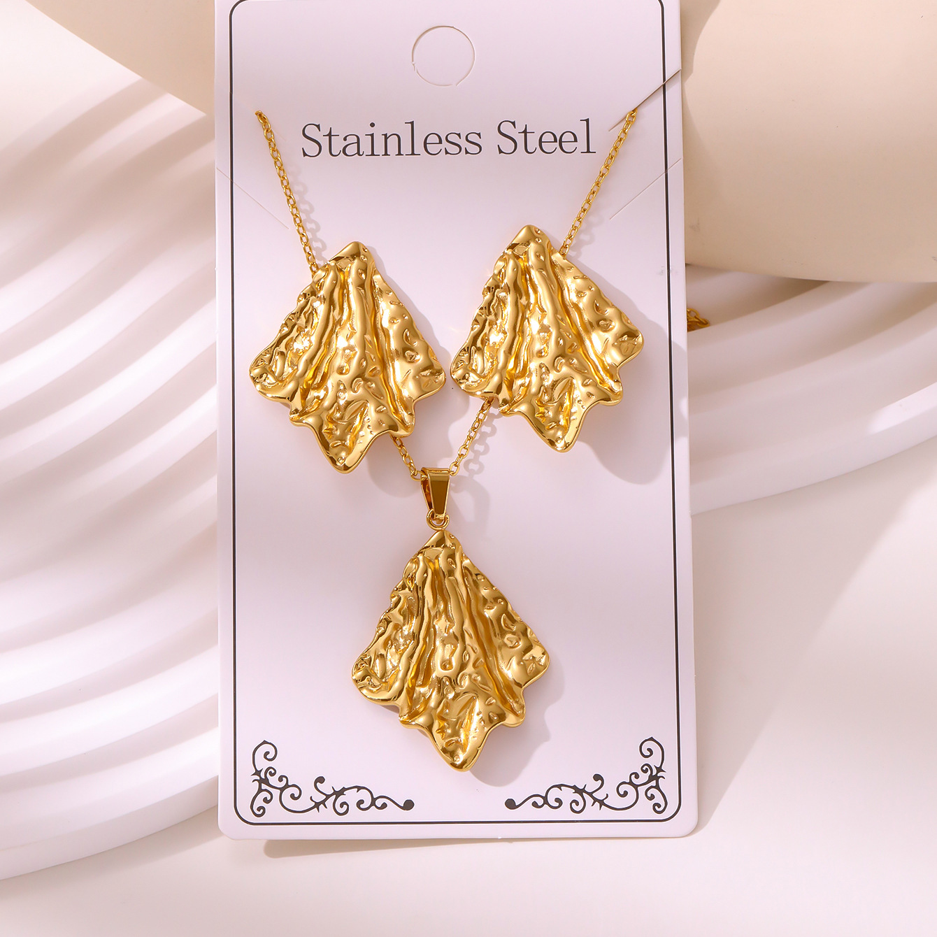 新款油压套装复古宫延耳钉项链不掉色不锈钢镀金饰品批发厂家直销