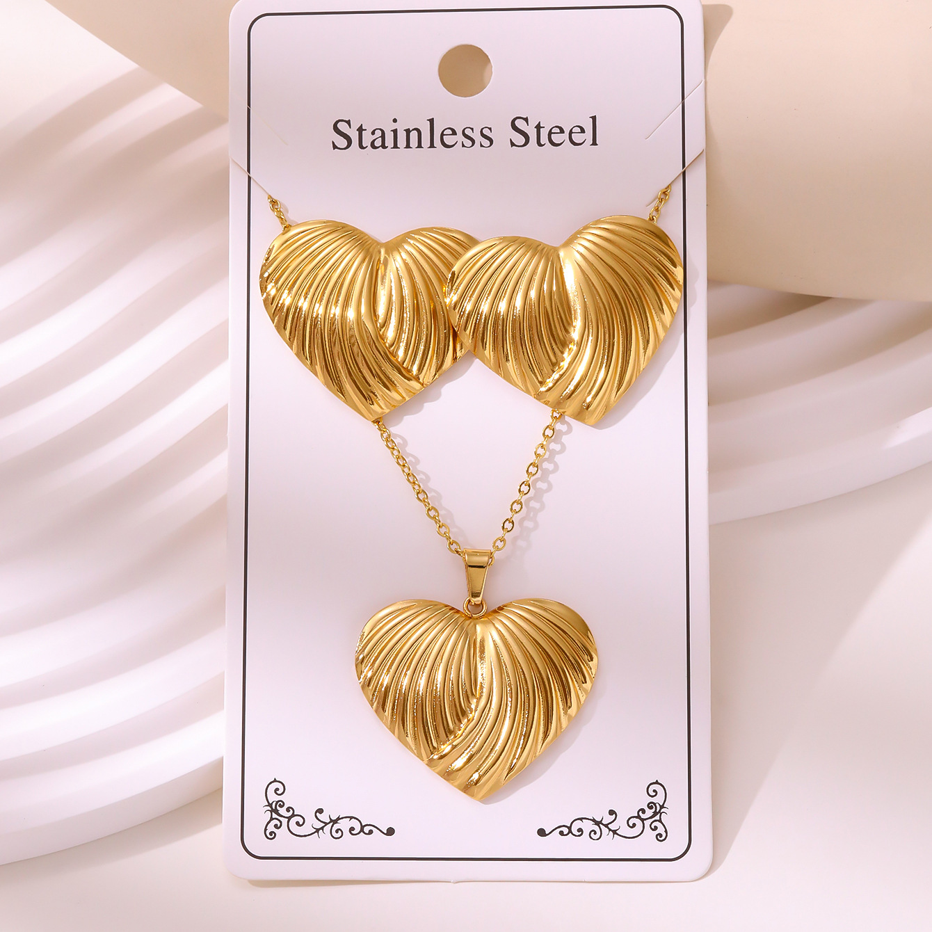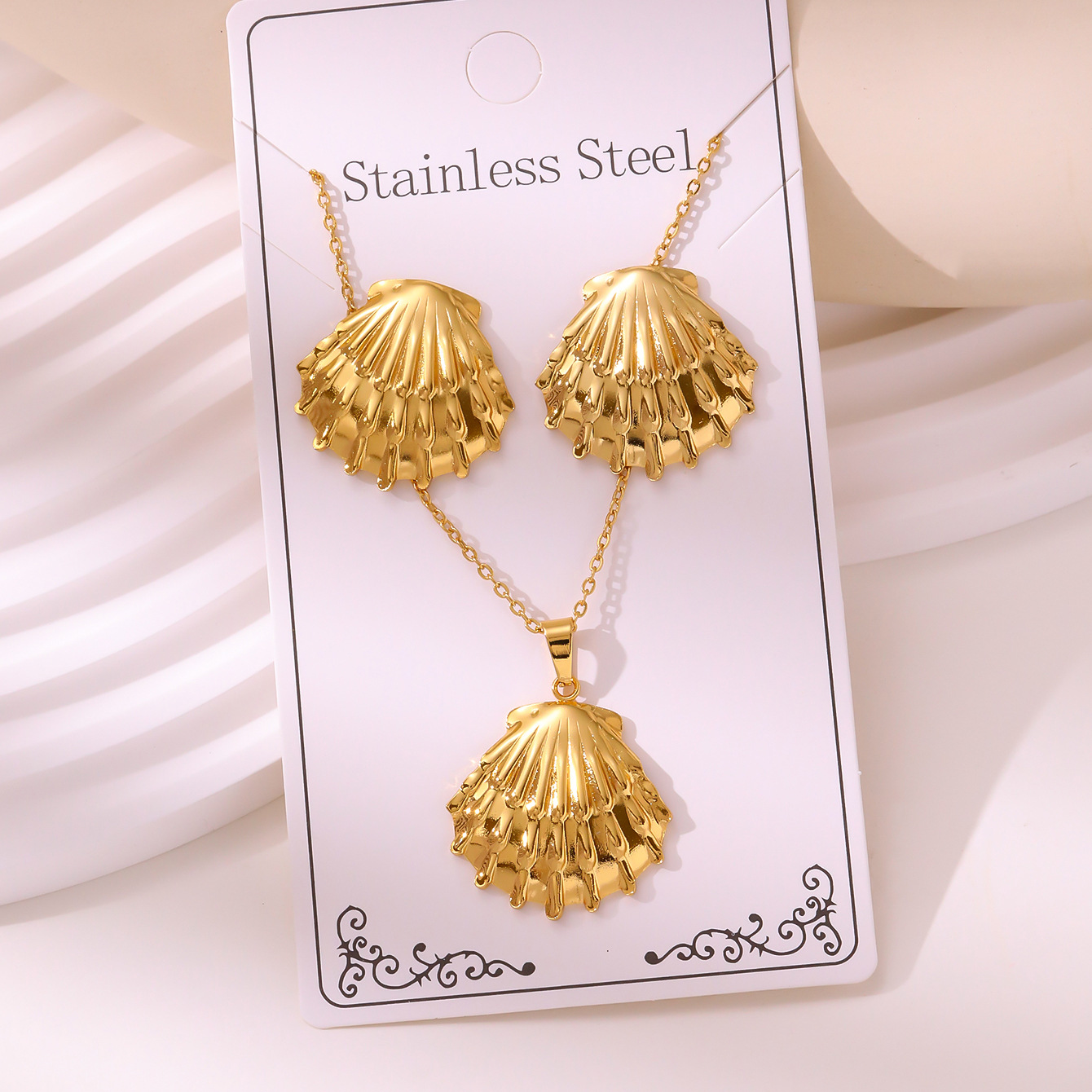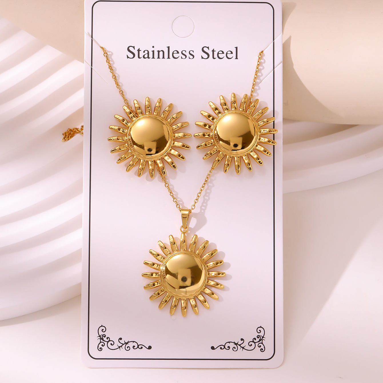新款油压套装复古宫延耳钉项链不掉色不锈钢镀金饰品批发厂家直销