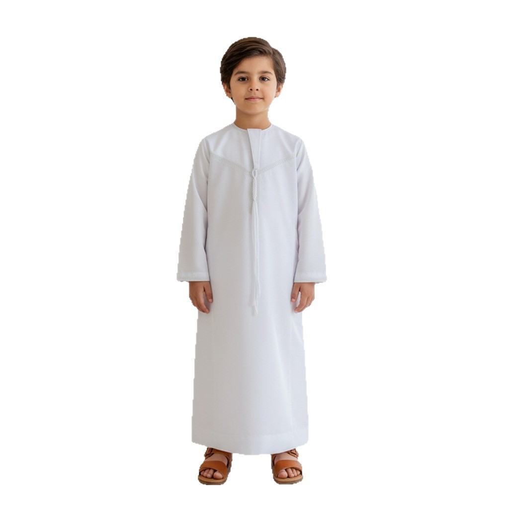 儿童阿拉伯传统长袍Thobe纯白色宽松男孩民族风礼服日常长款服饰