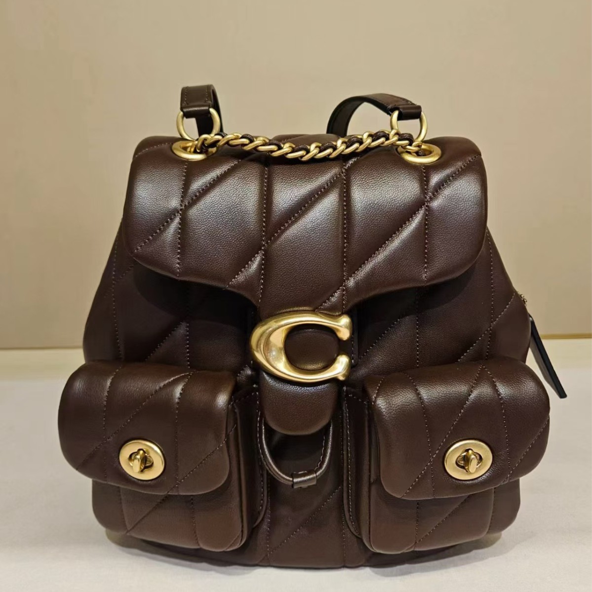 蔻家新款女包Tabby羊皮双肩包菱格链条双肩包百搭背包小香风包包