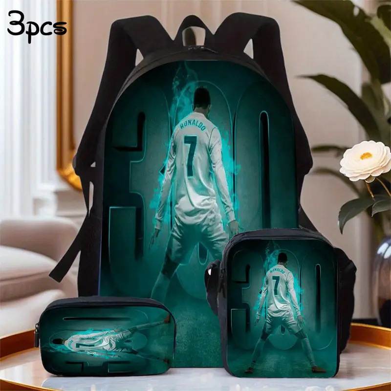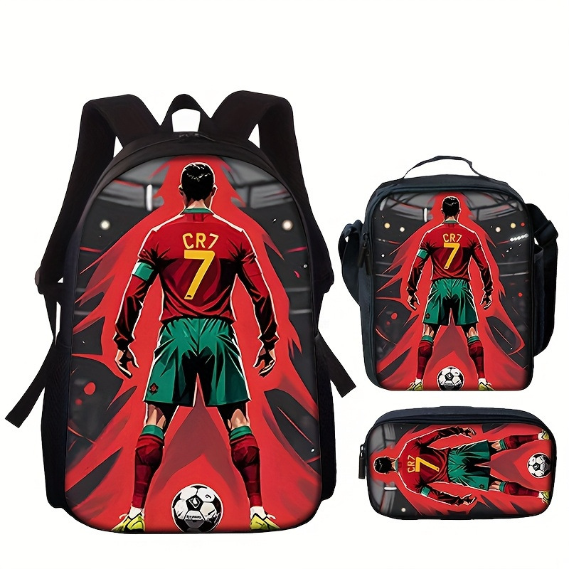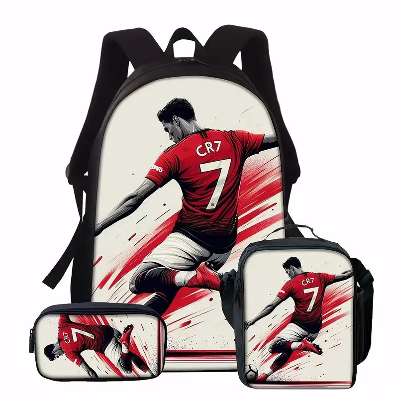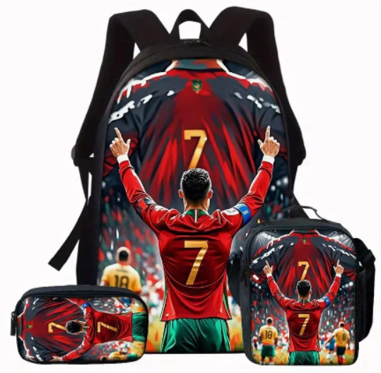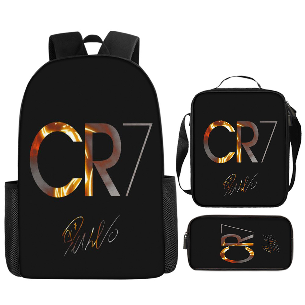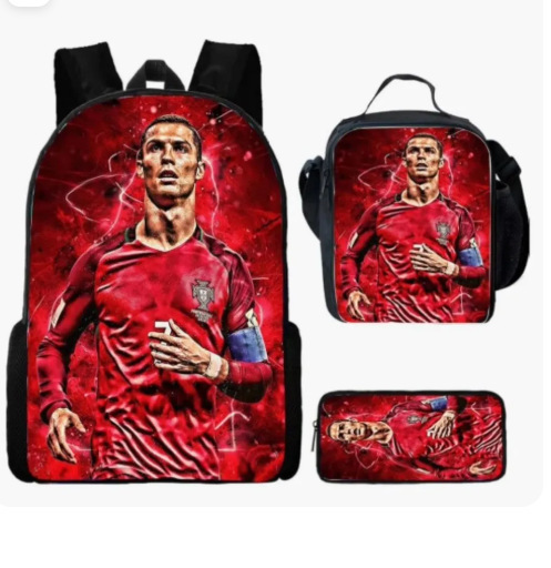 C罗卡通儿童书包三件套小学生书包防泼水涤纶斜挎包笔袋现货代发