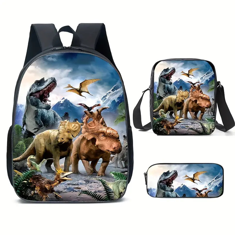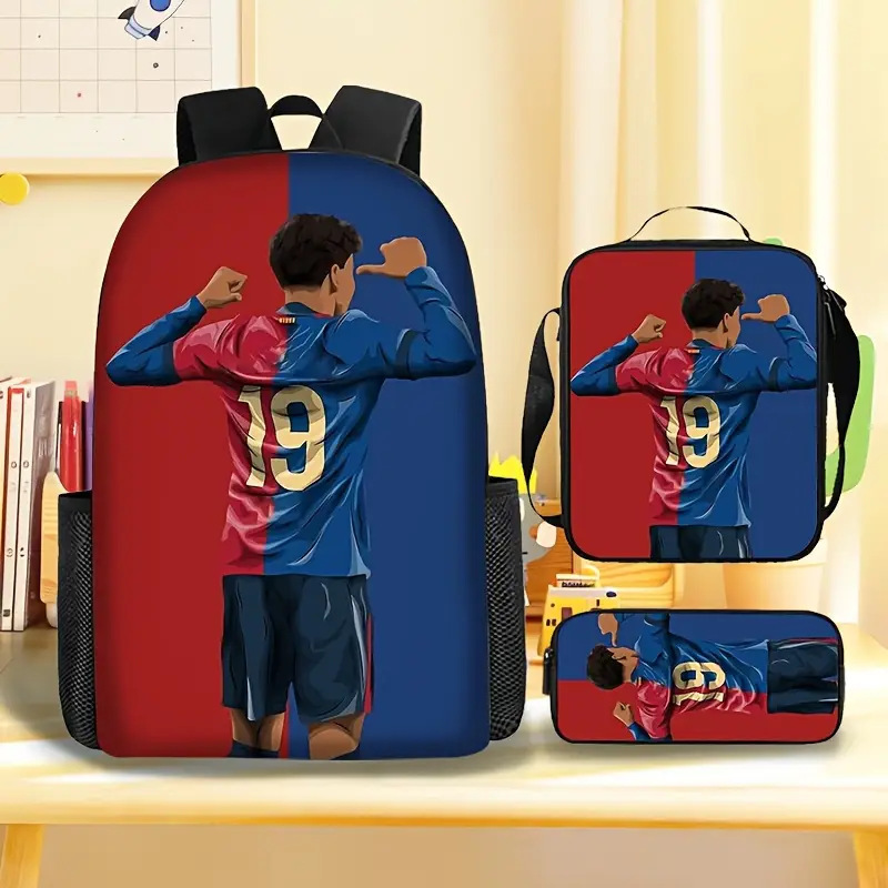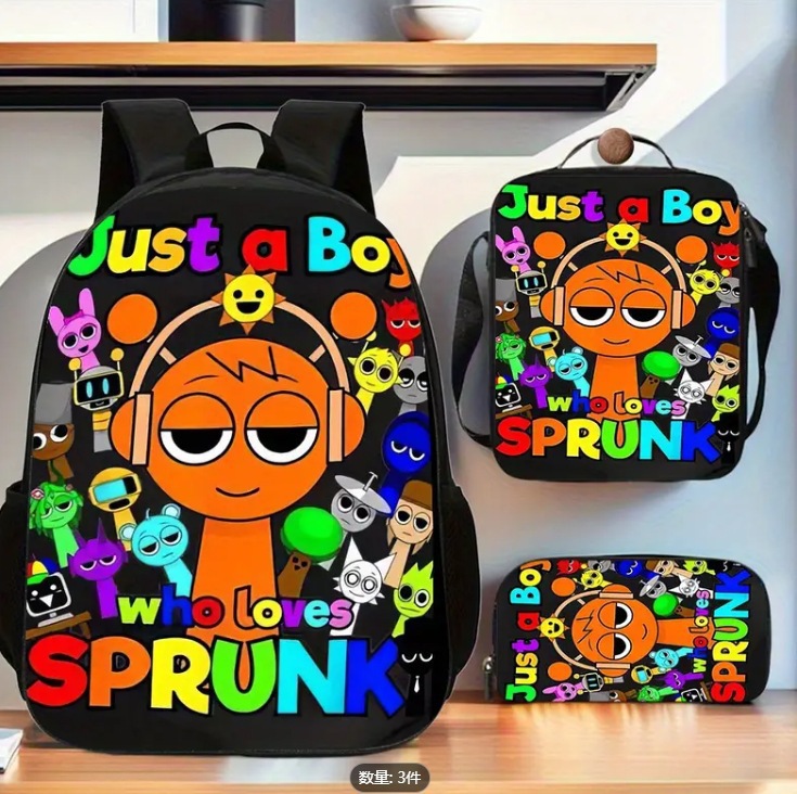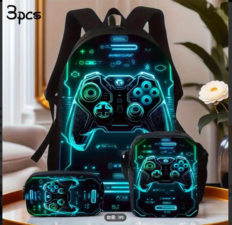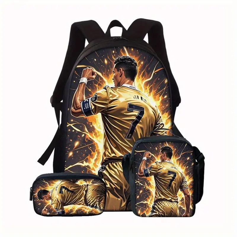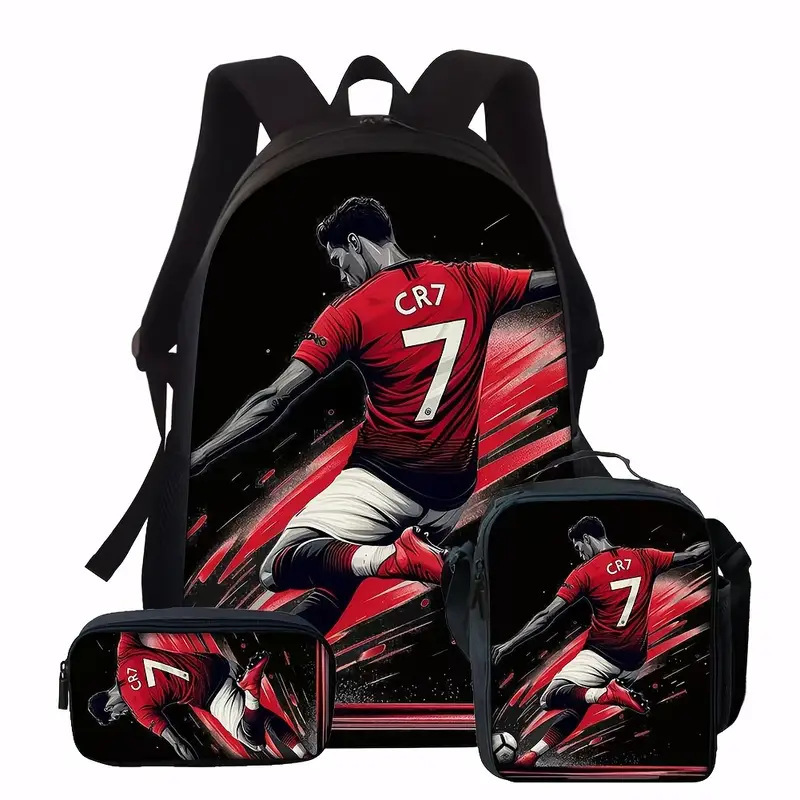 C罗卡通儿童书包三件套小学生书包防泼水涤纶斜挎包笔袋现货代发