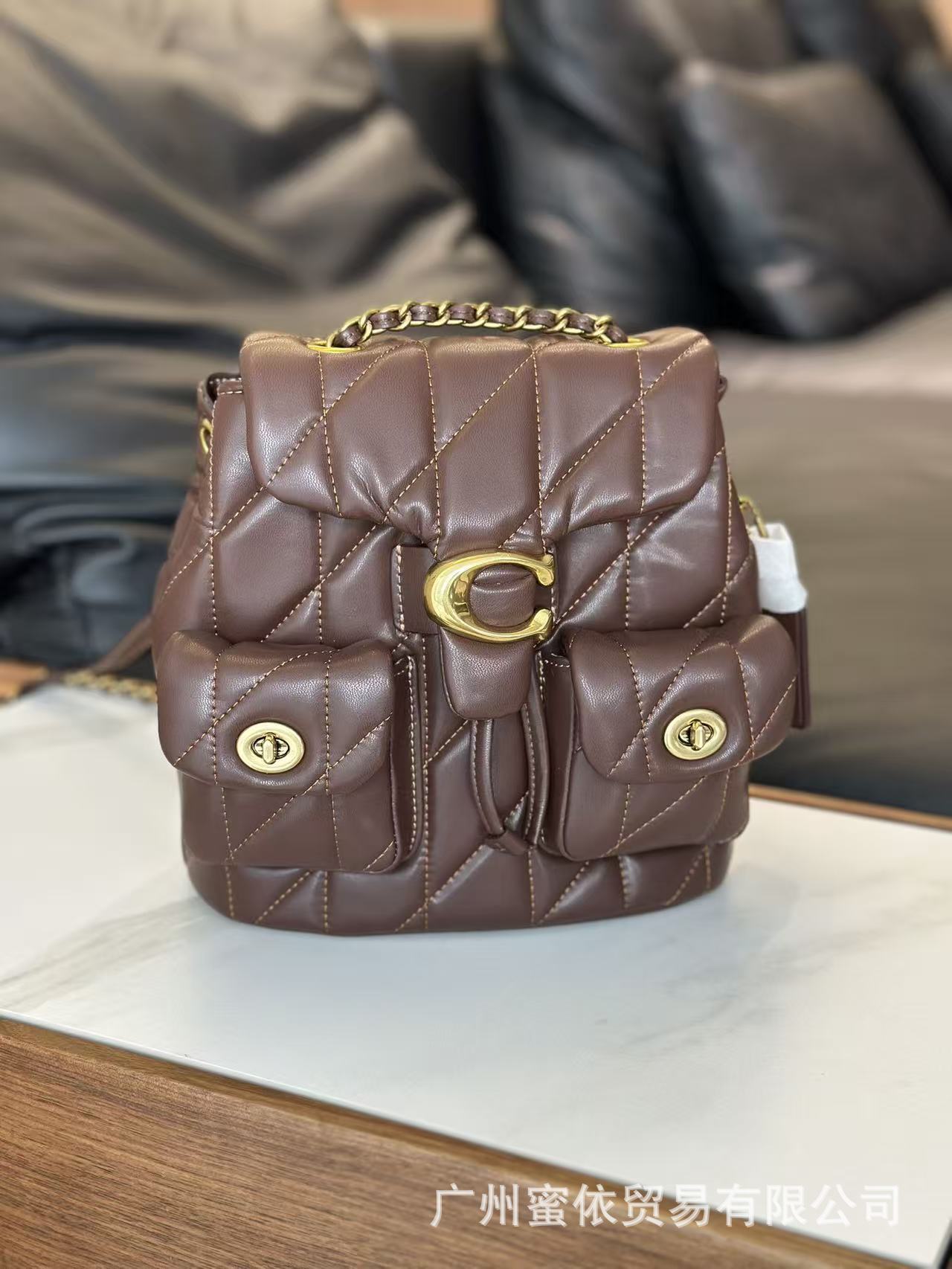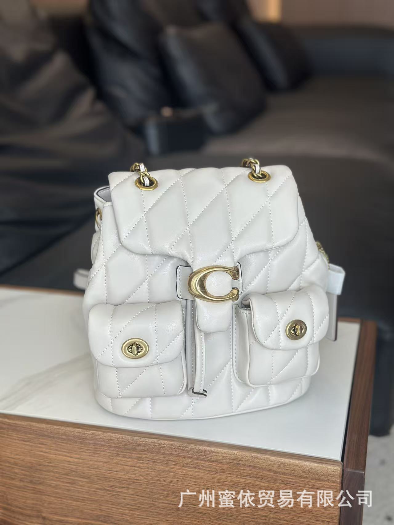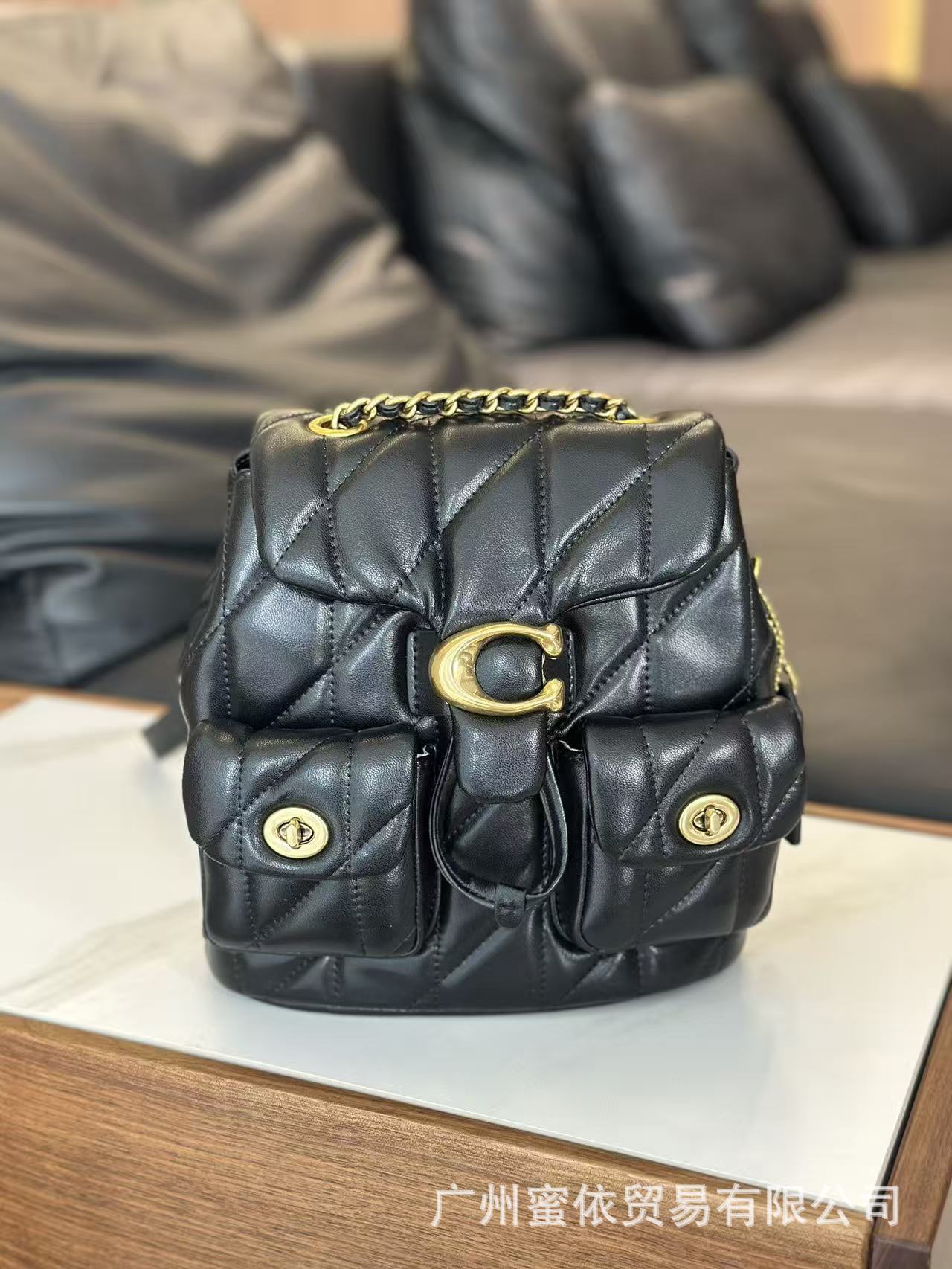 C家蔻家奥莱款Tabby 22 羊皮双肩包菱格链条抽绳背包真皮高版本