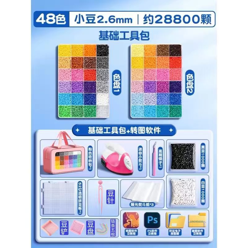 48色送升级工具包+黑白豆2000颗+小熨斗
