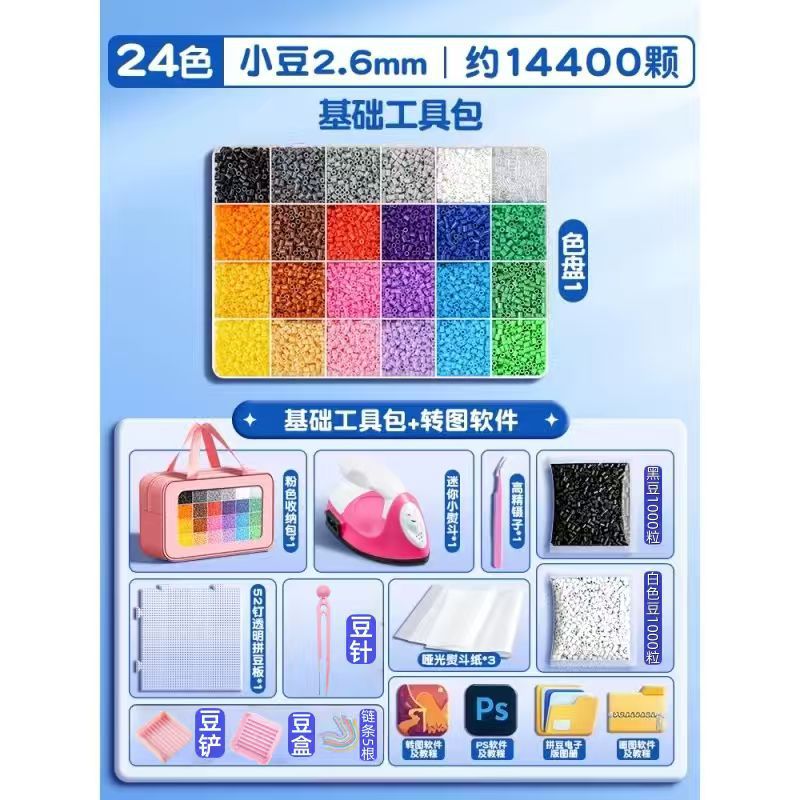 24色送升级工具包+黑白豆2000颗+小熨斗