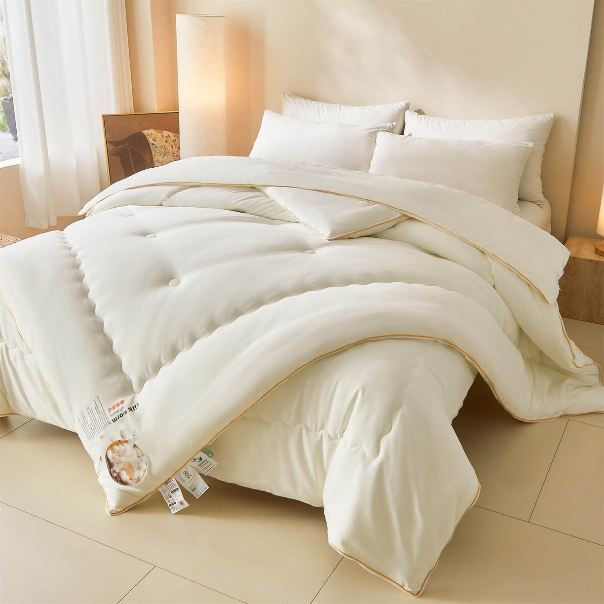 手蚕丝被桑蚕丝被子母被二合一拉春秋被芯双人冬被四季通用加厚