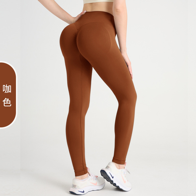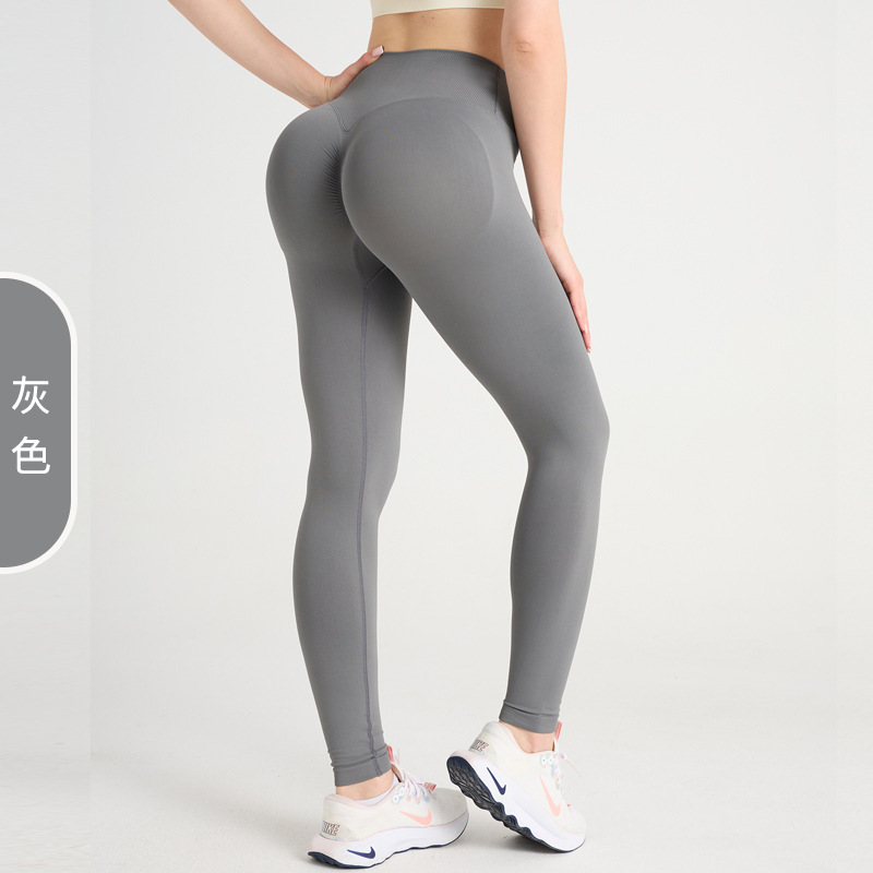 新款欧美蜜桃提臀无缝瑜伽裤交叉高腰紧身裤跑步运动高弹健身长裤