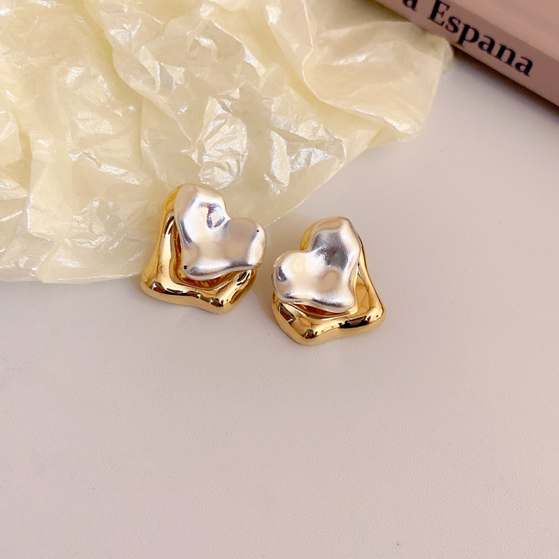 银针不规则花朵爱心金银色几何耳环轻奢时尚耳钉个性高级感耳饰女