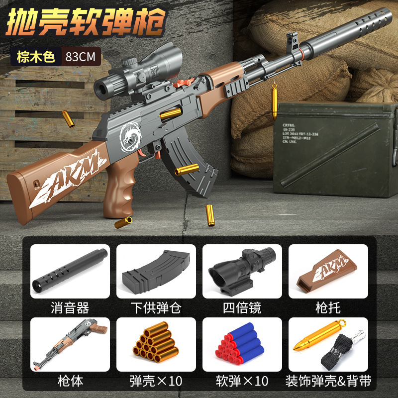 儿童男孩AK47玩具枪手动拉栓抛壳AK玩具软弹突击步枪摆摊批发代发