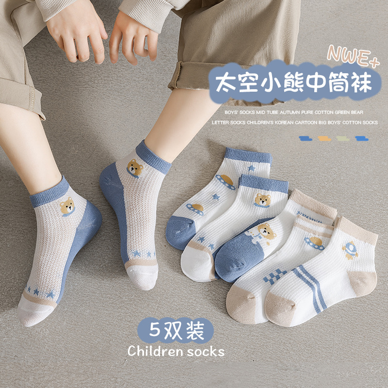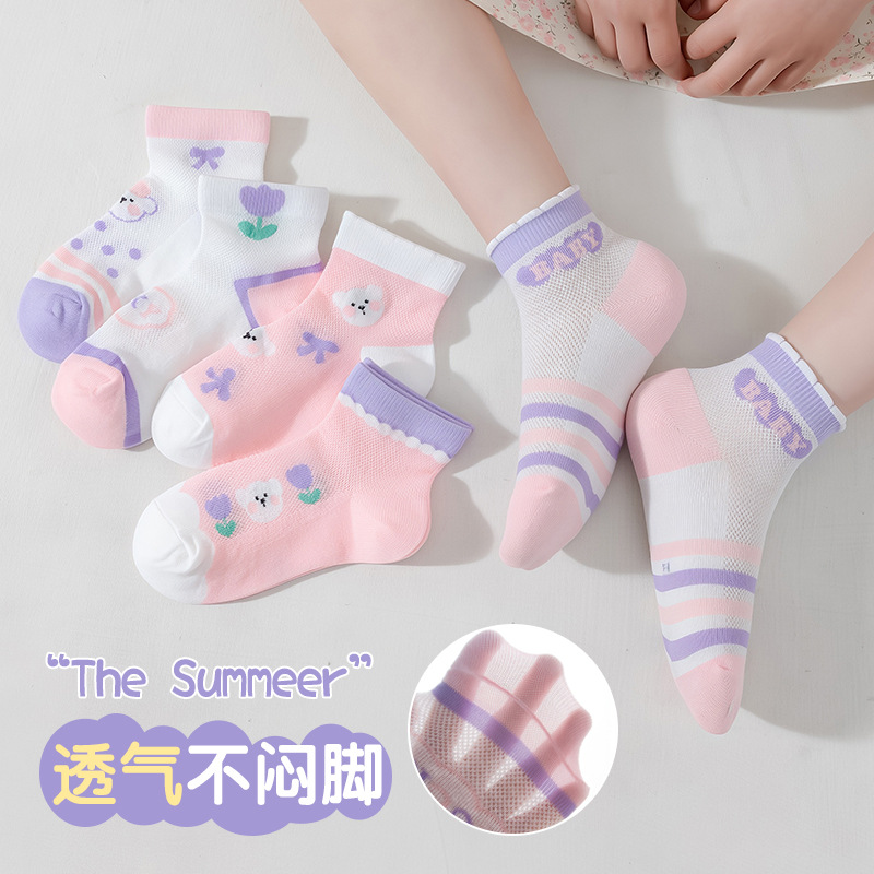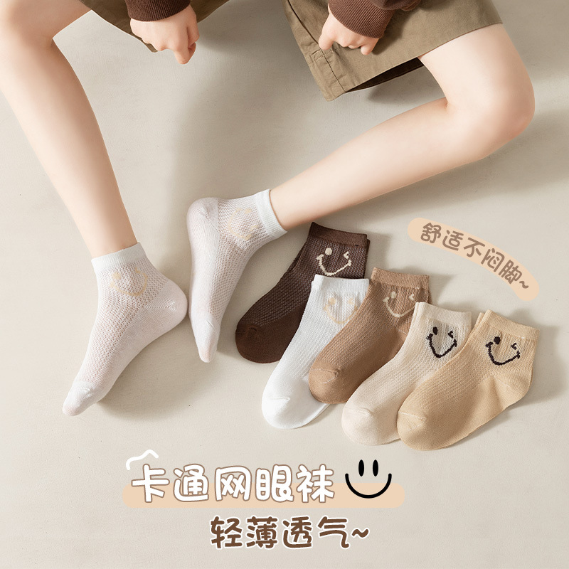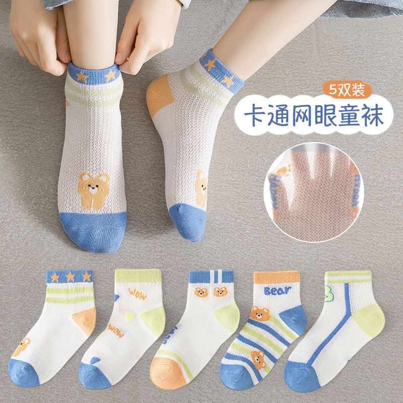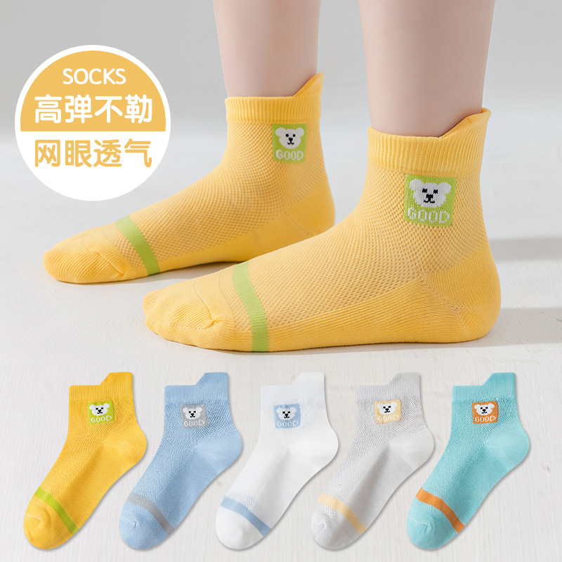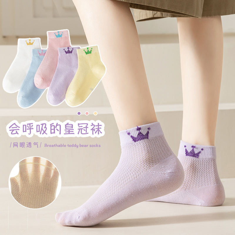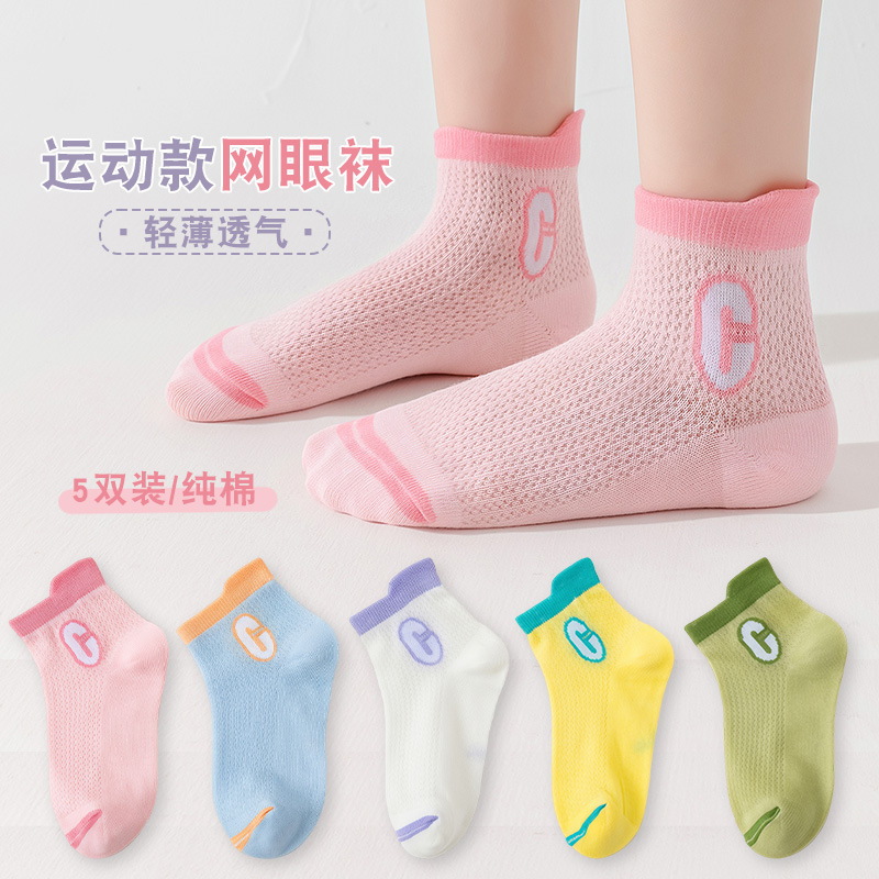 儿童袜子男女春夏薄款短袜无骨纯色精梳棉宝宝网眼透气运动学生袜