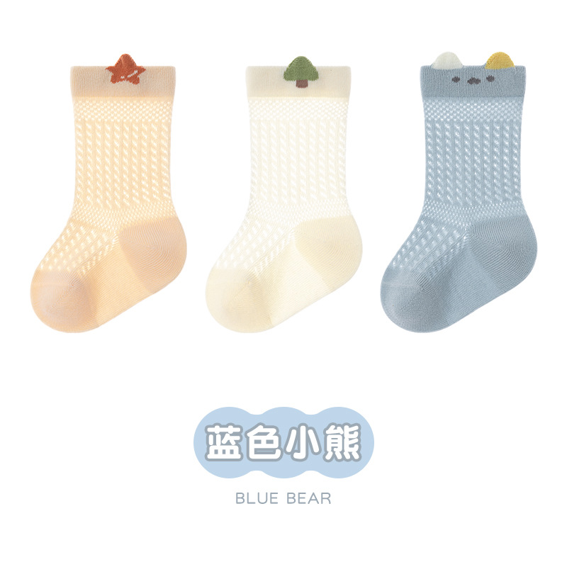 25无骨零线头透气宝宝袜婴幼儿卡通薄棉袜子春夏小童大网眼三双装