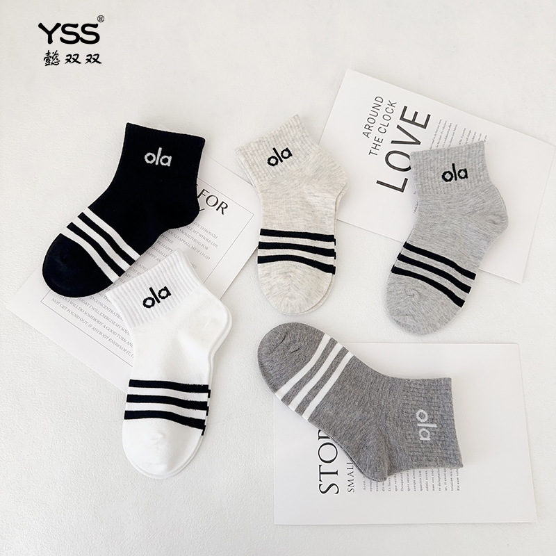 懿双双儿童袜子春夏新款韩版字母短袜精梳棉条纹黑白灰男童无骨袜