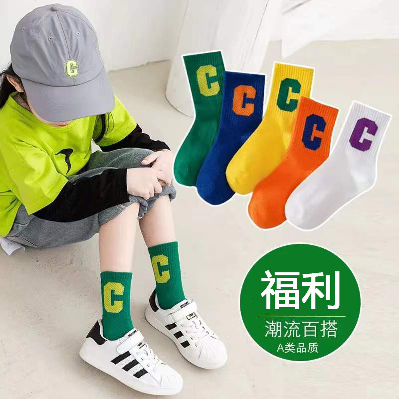 儿童袜子潮款网眼大字母潮袜纯色男女中大童春夏秋冬天棉童袜现货