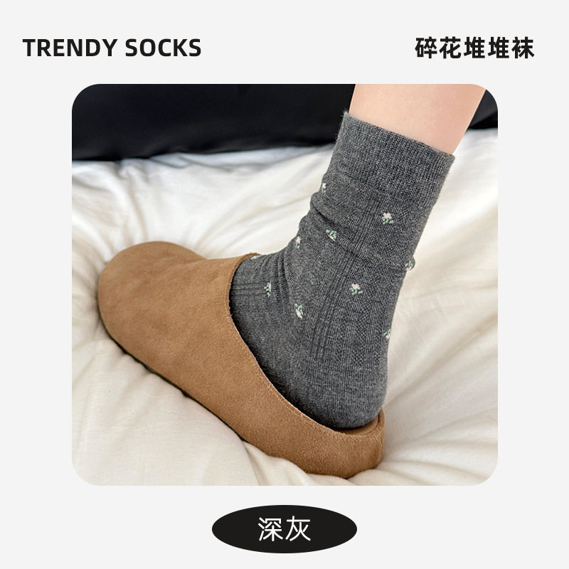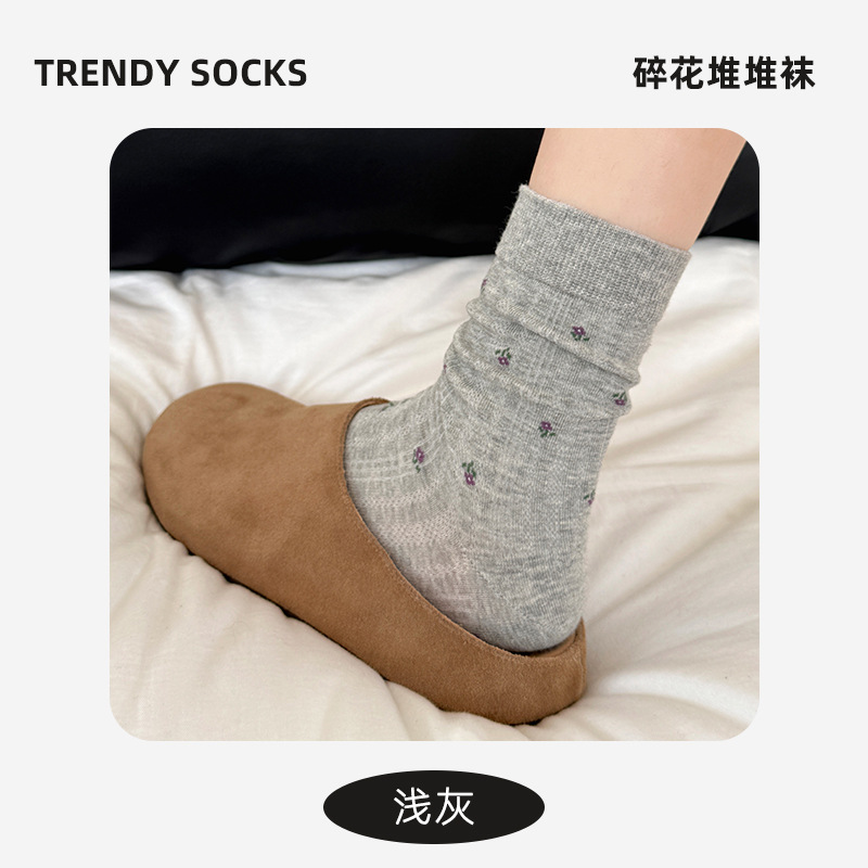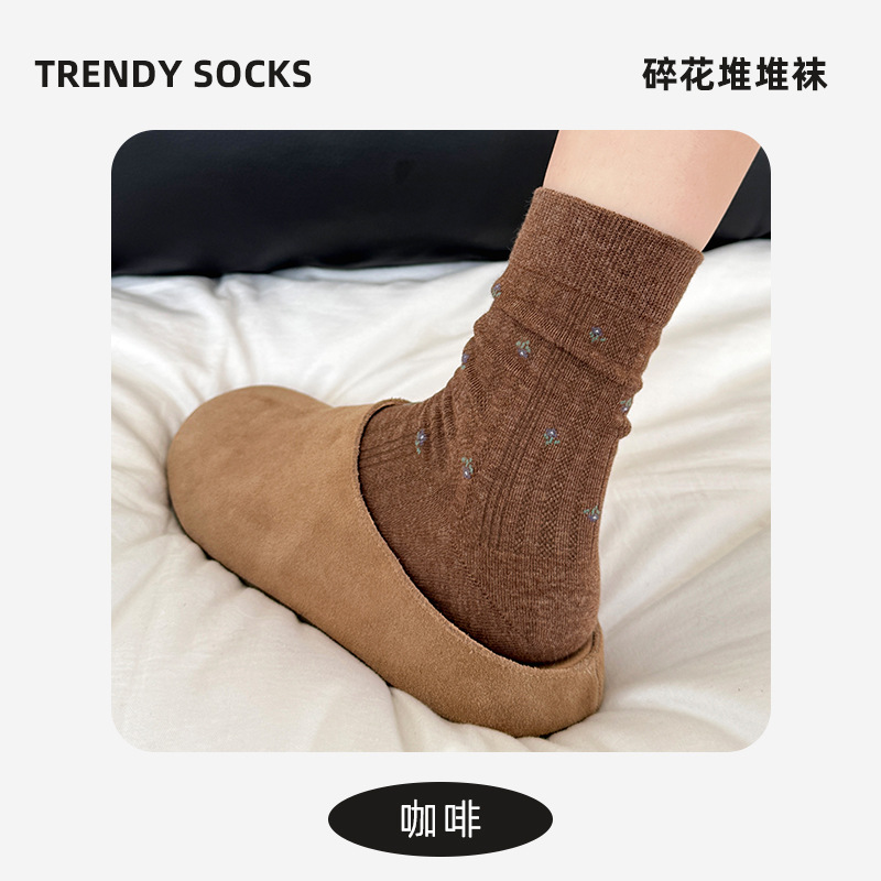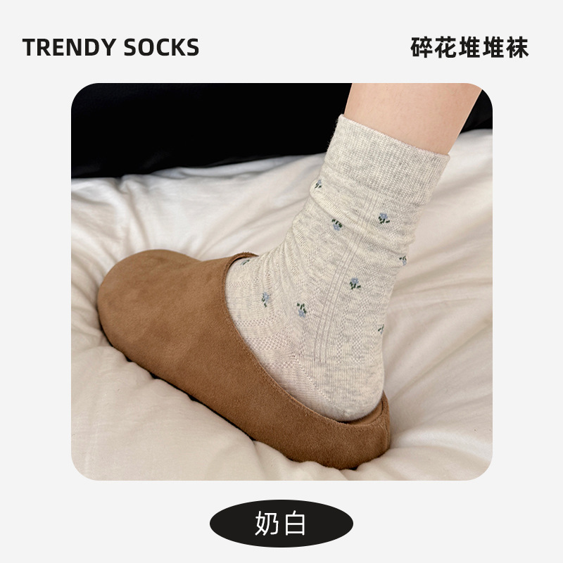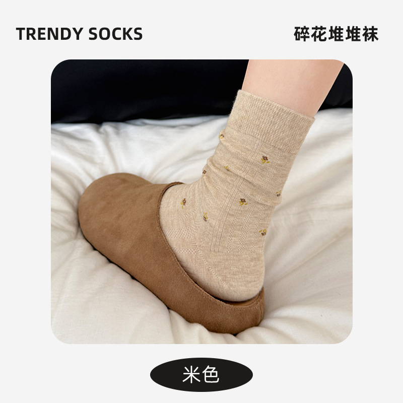袜子女韩版春夏女款复古中筒袜ins百搭碎花女袜堆堆棉袜诸暨袜业