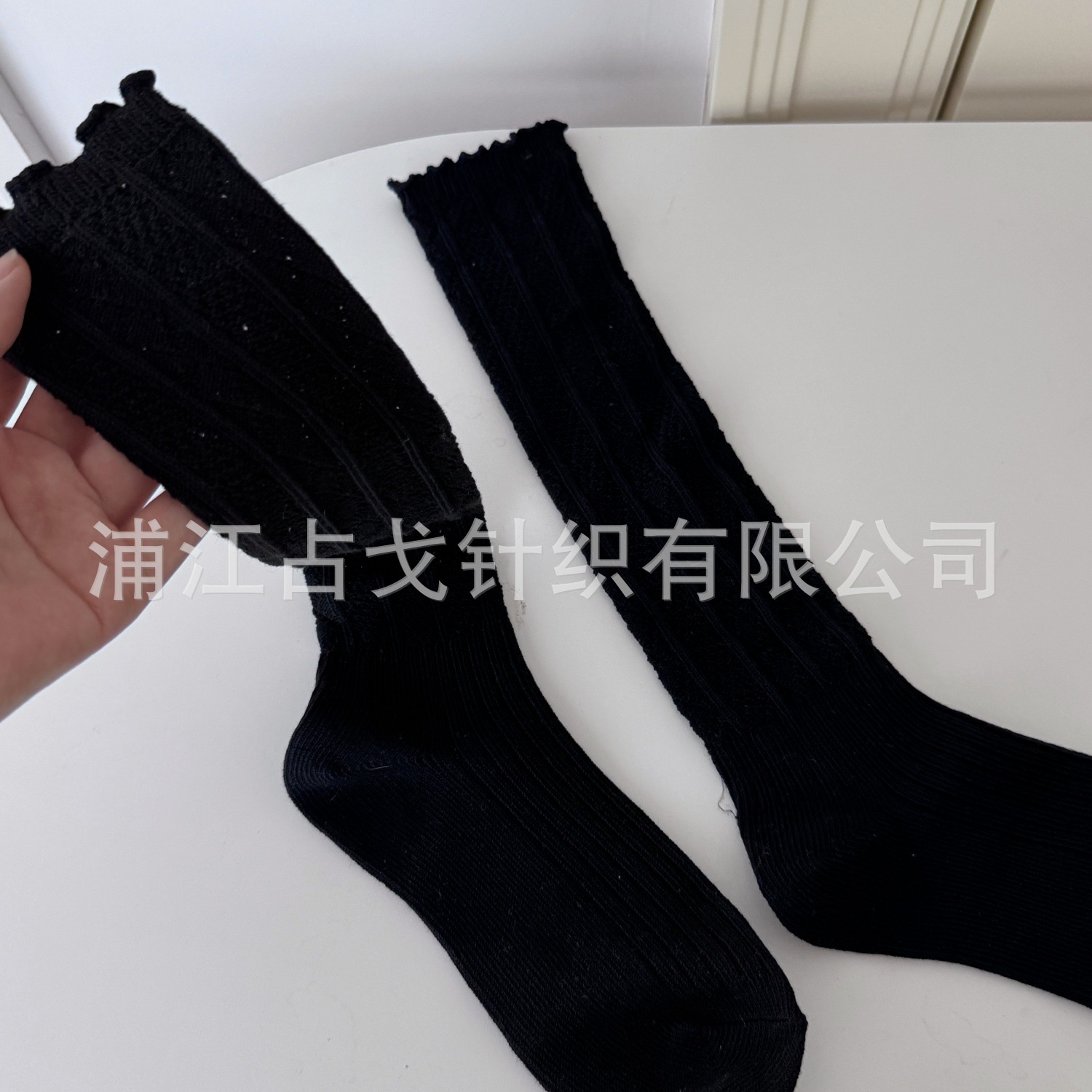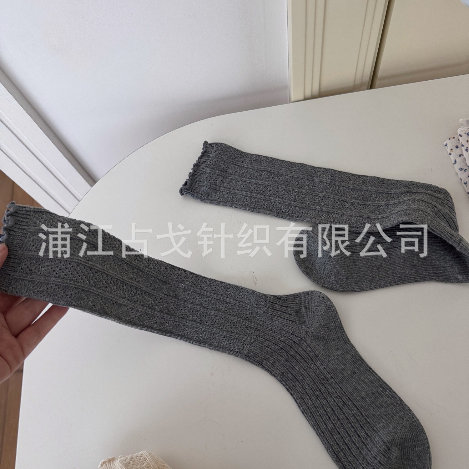 新款日系镂空芭蕾风木耳边中筒袜双针双路甜美吸汗堆堆袜子四季女