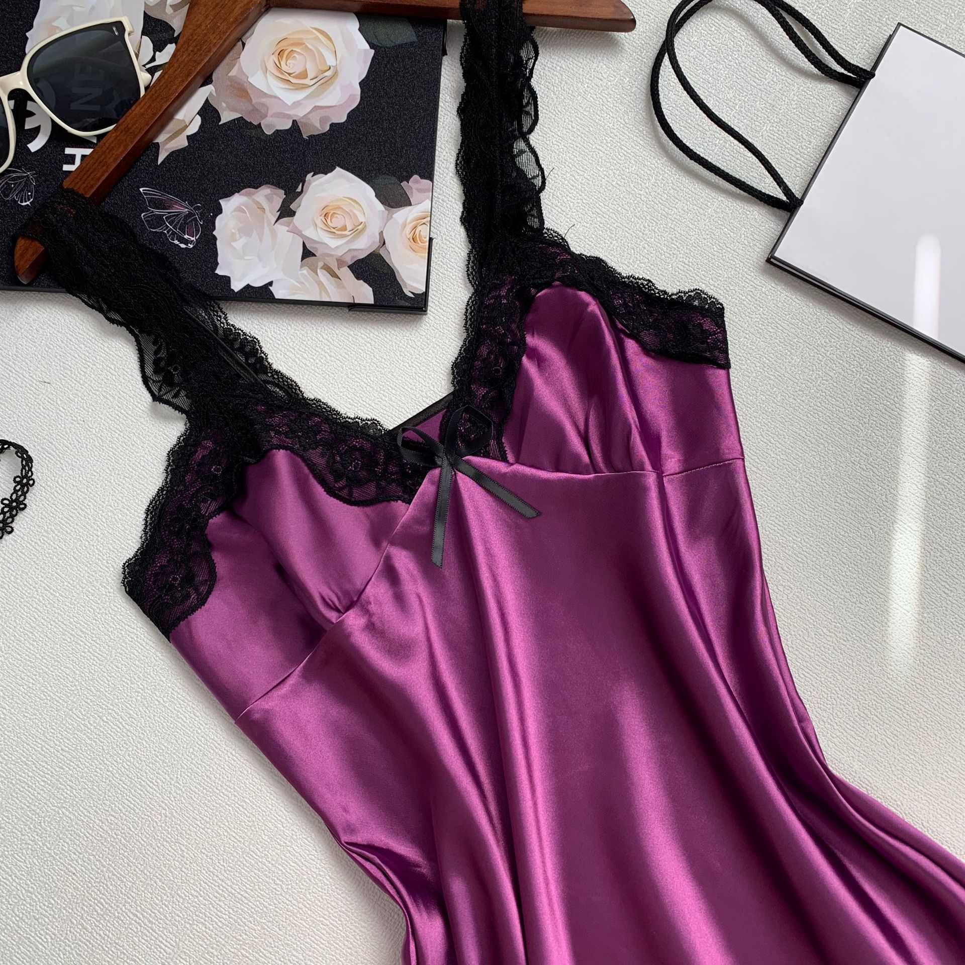 黑花边紫单裙(胸垫款)