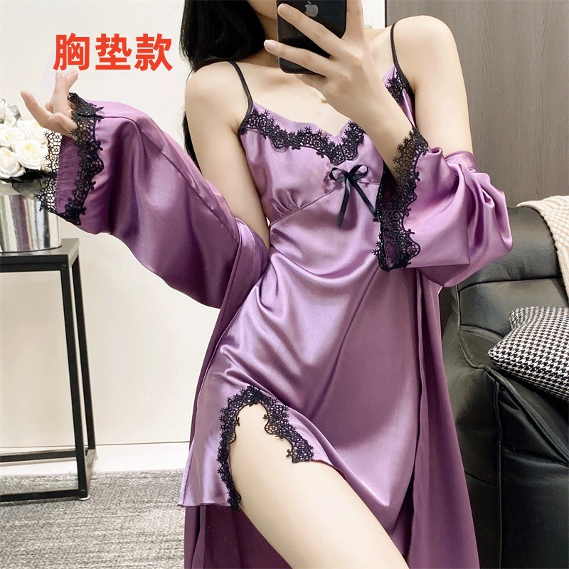黑花边紫裙+袍(胸垫款)