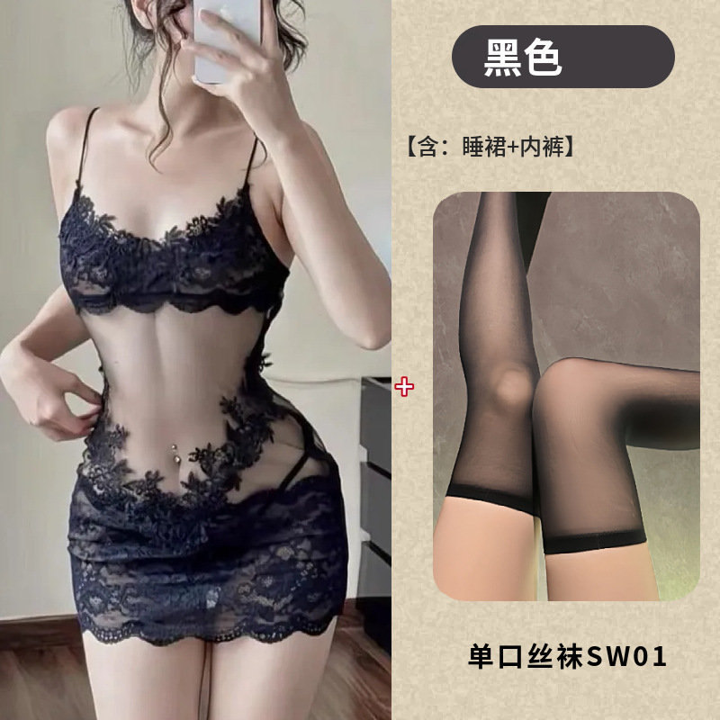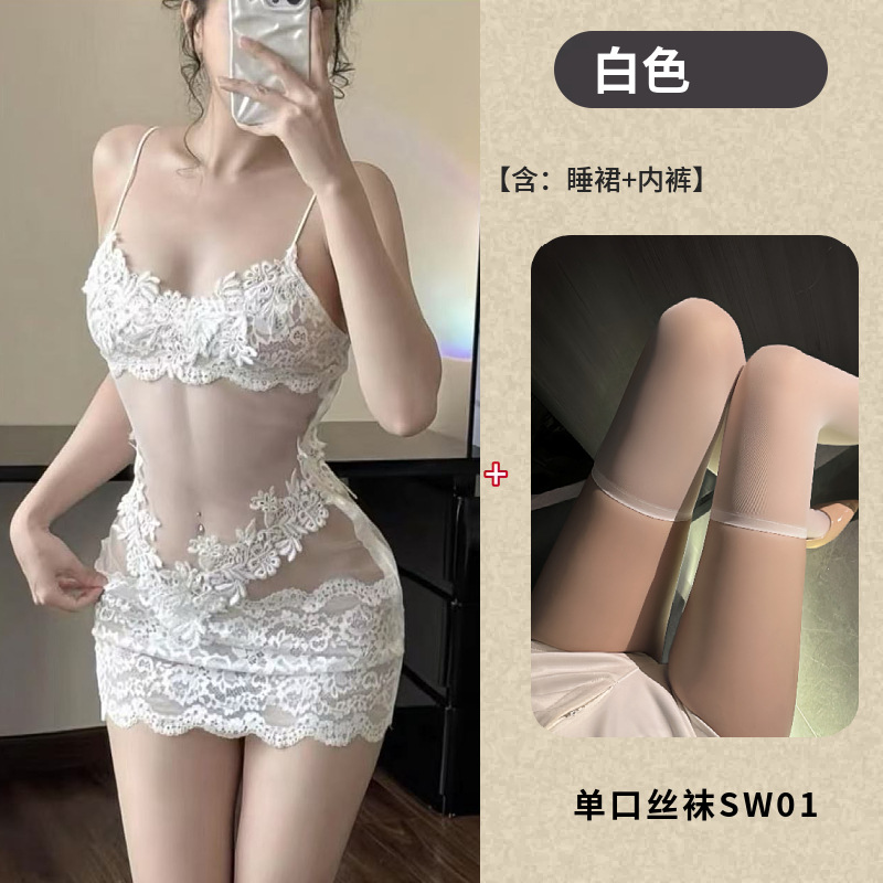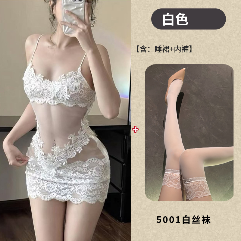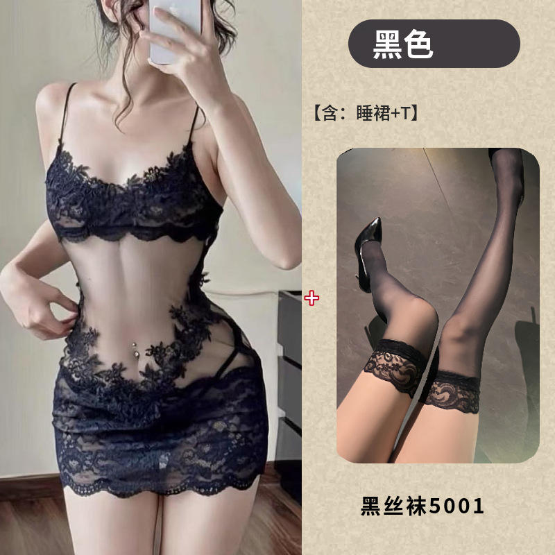 情趣内衣透明蕾丝性感睡裙高级感网纱吊带睡衣女款夏季纯欲风刺绣