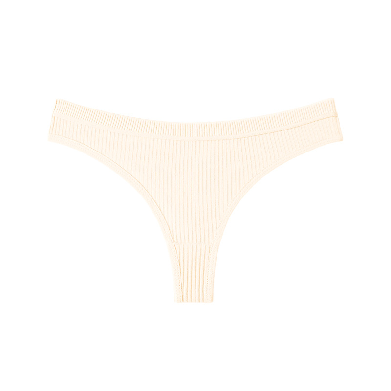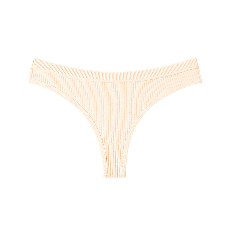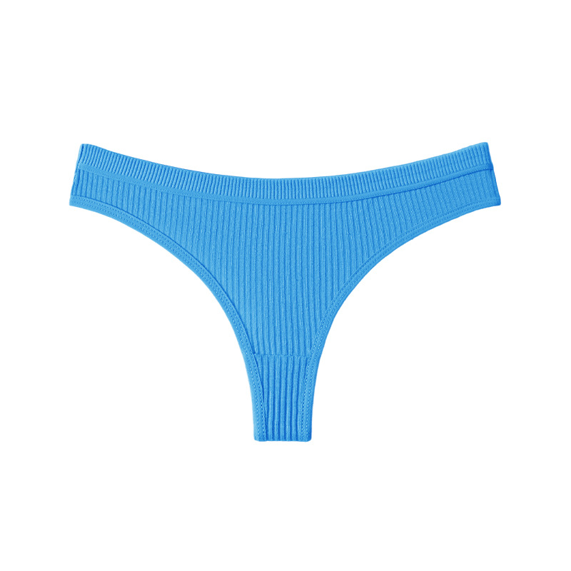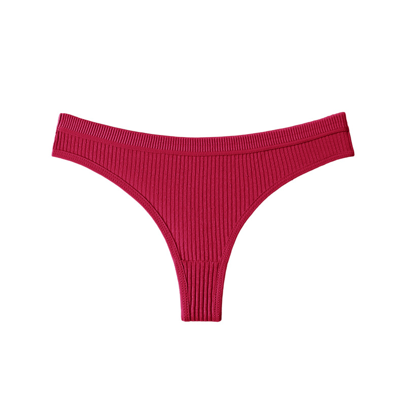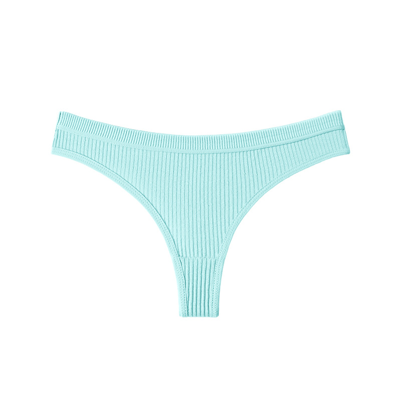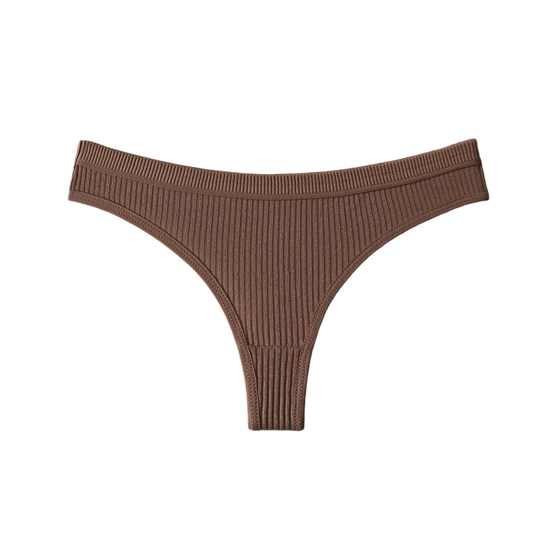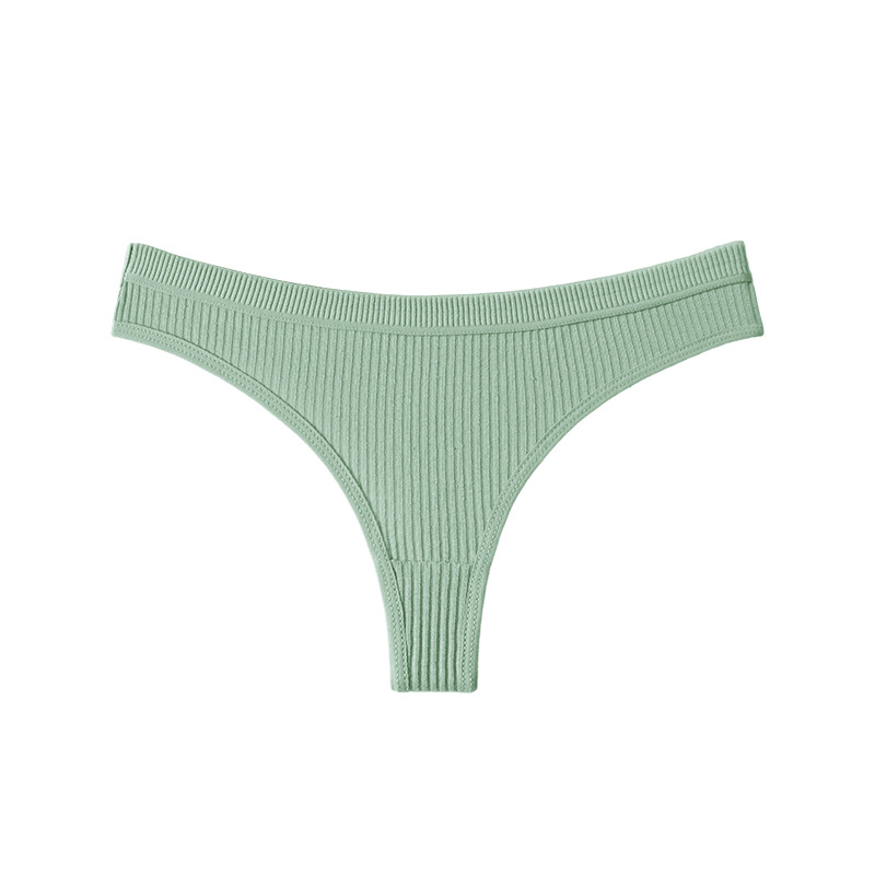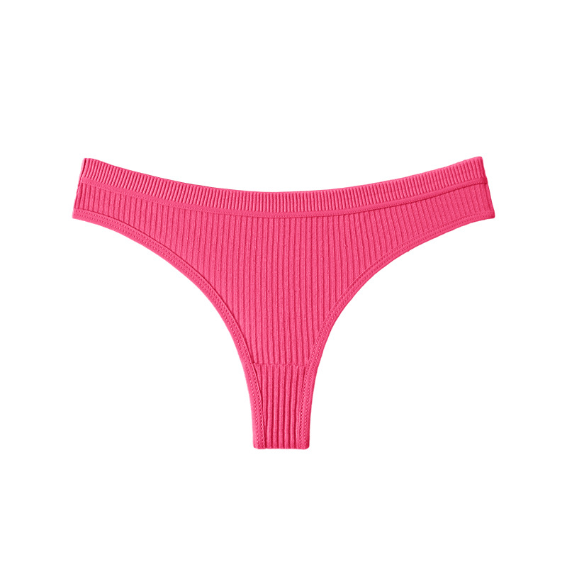 跨境丁字裤欧美纯色纯棉内裤女性感运动无痕低腰内裤螺纹三角短裤