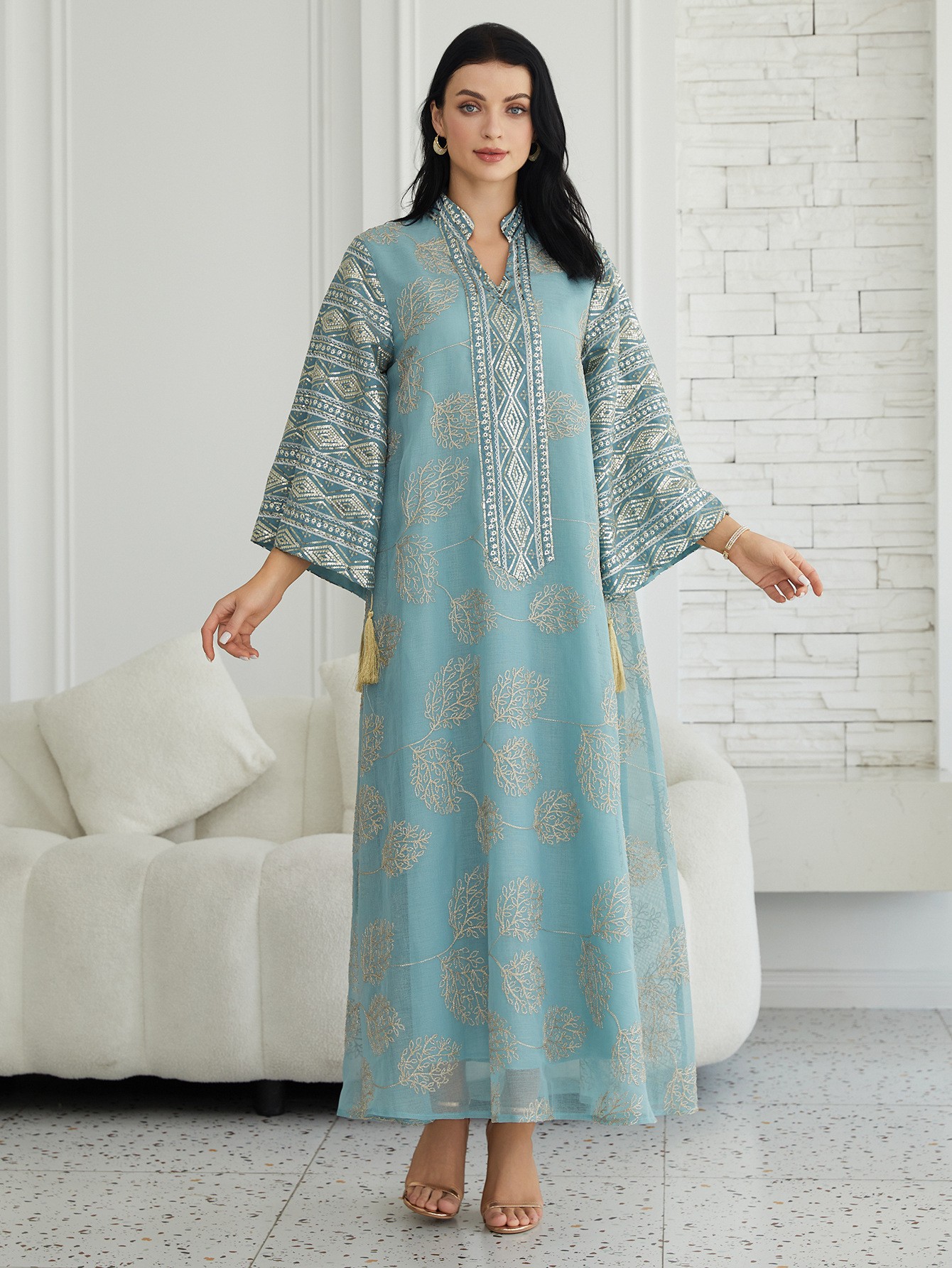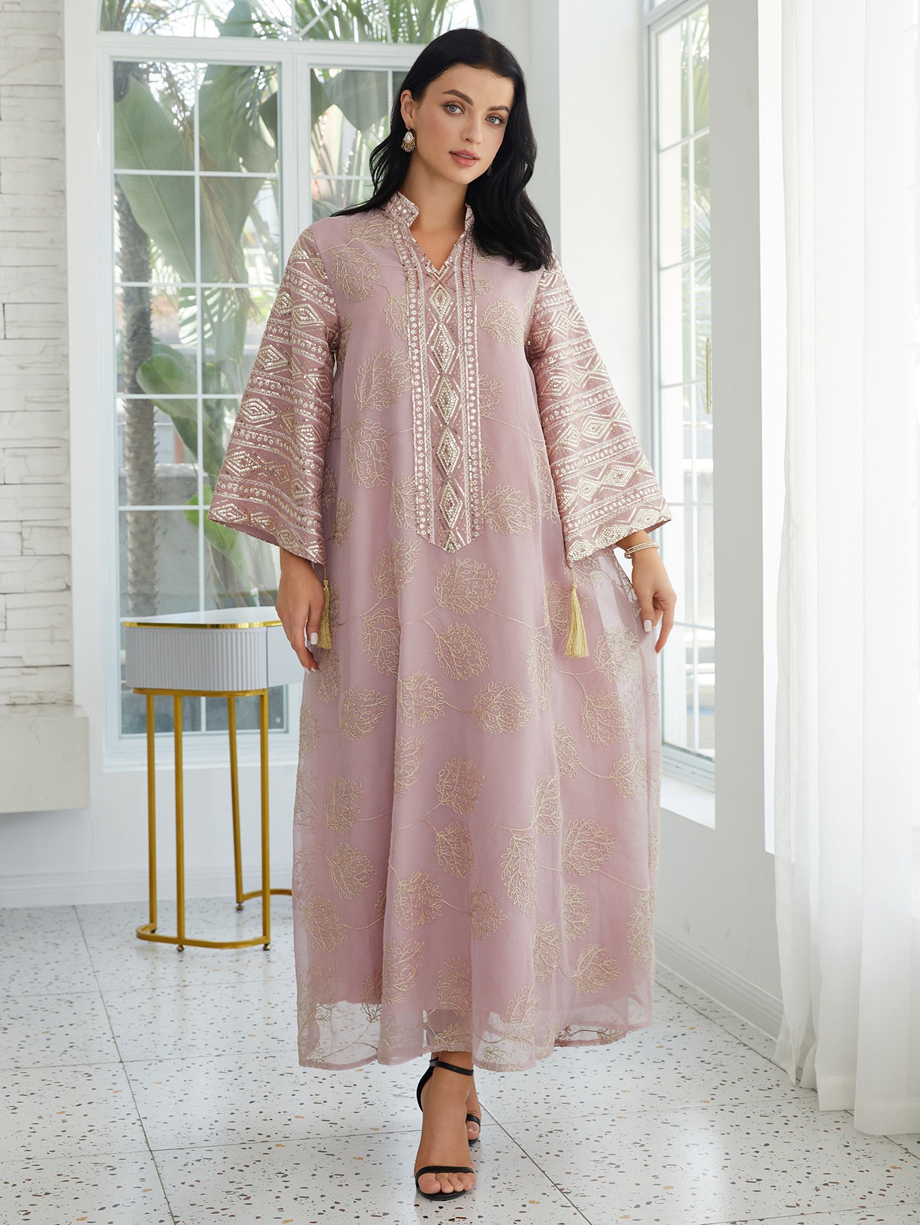 SW68 亚马逊穆斯林网纱刺绣亮片女装晚礼服阿拉伯迪拜长袍abayas