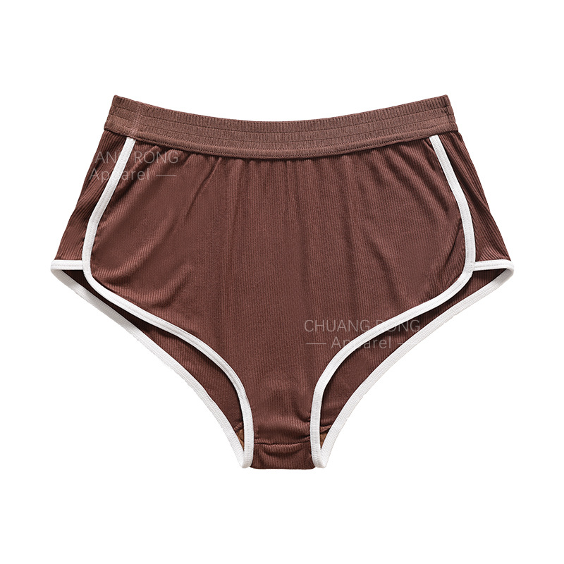 外贸螺纹短裤内裤女撞色大码性感低腰不夹臀透气舒适女士平角裤