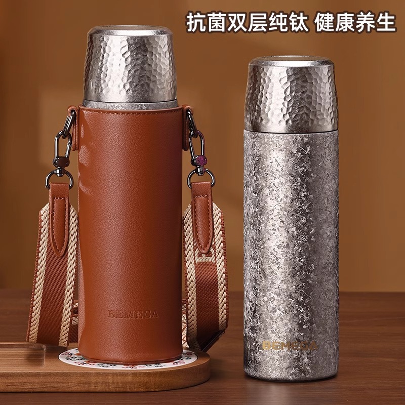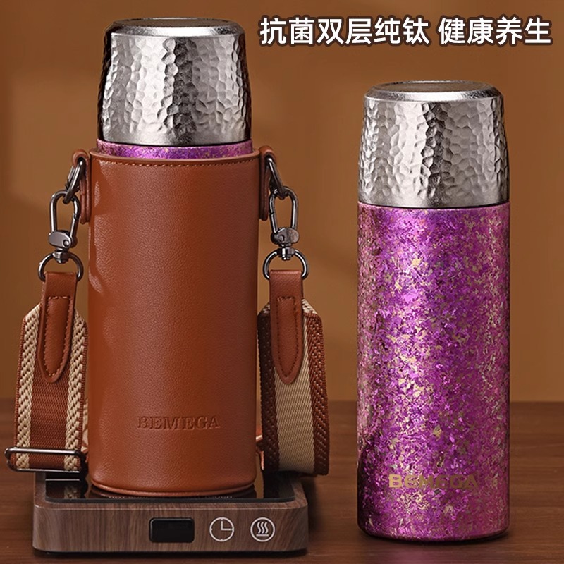 Bemega纯钛保温杯男款女2025新款双层钛杯茶水分离便携泡茶水杯子