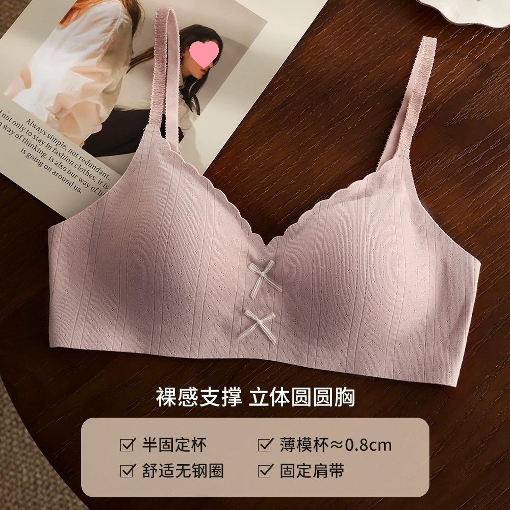 裸感无痕舒适内衣女小胸聚拢显大无钢圈甜美日系薄款蝴蝶结文胸罩