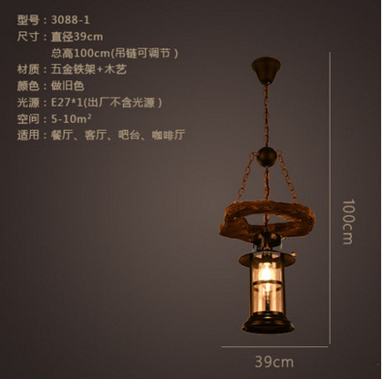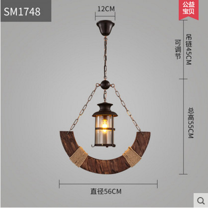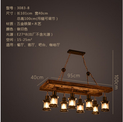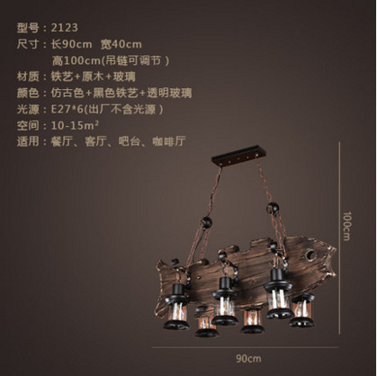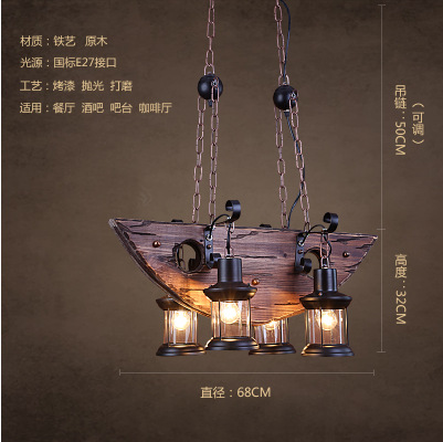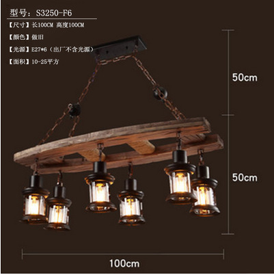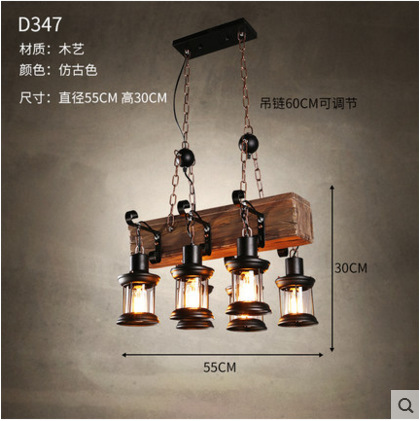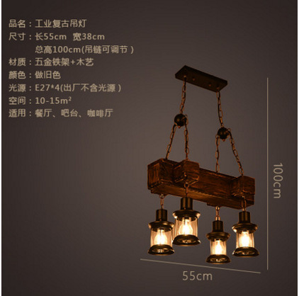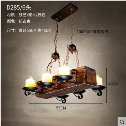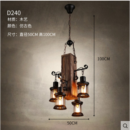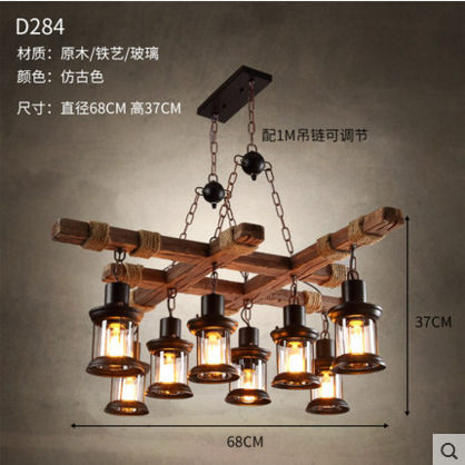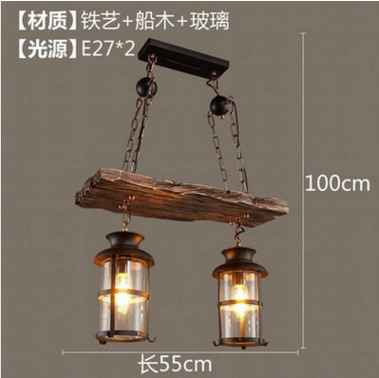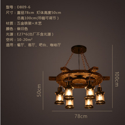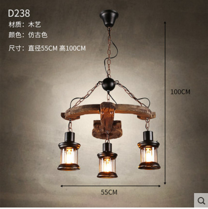美式复古工业风餐厅咖啡店船木吊灯创意吧台饭店包厢怀旧木头灯具