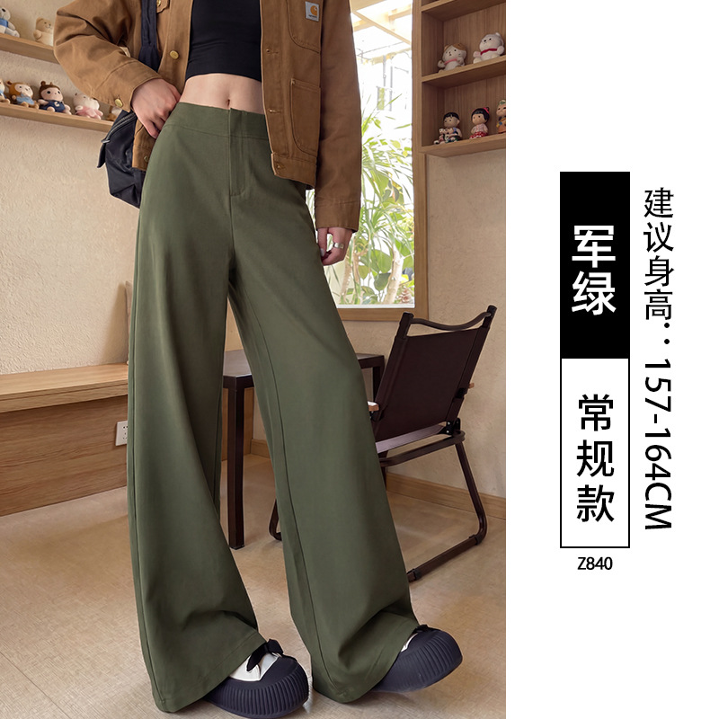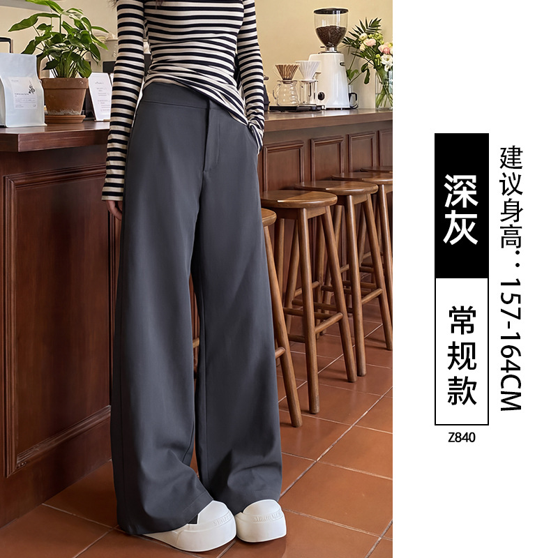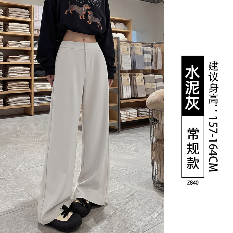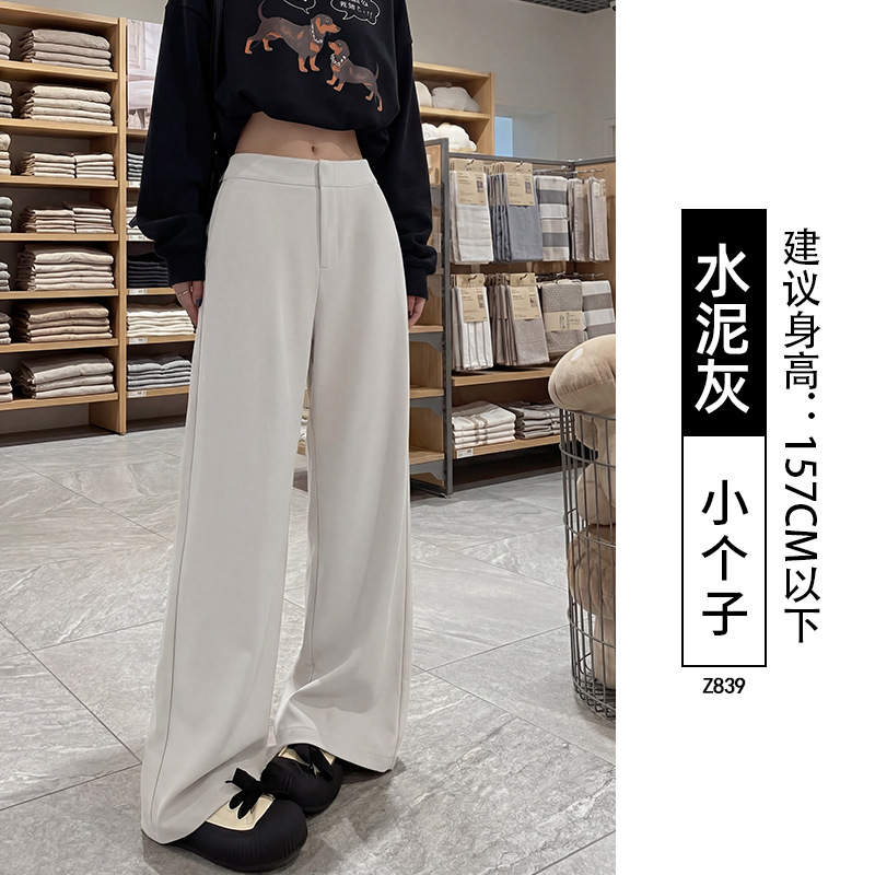 卡其色阔腿裤女裤子2026新款春秋高级感垂感直筒宽松小个子西装裤