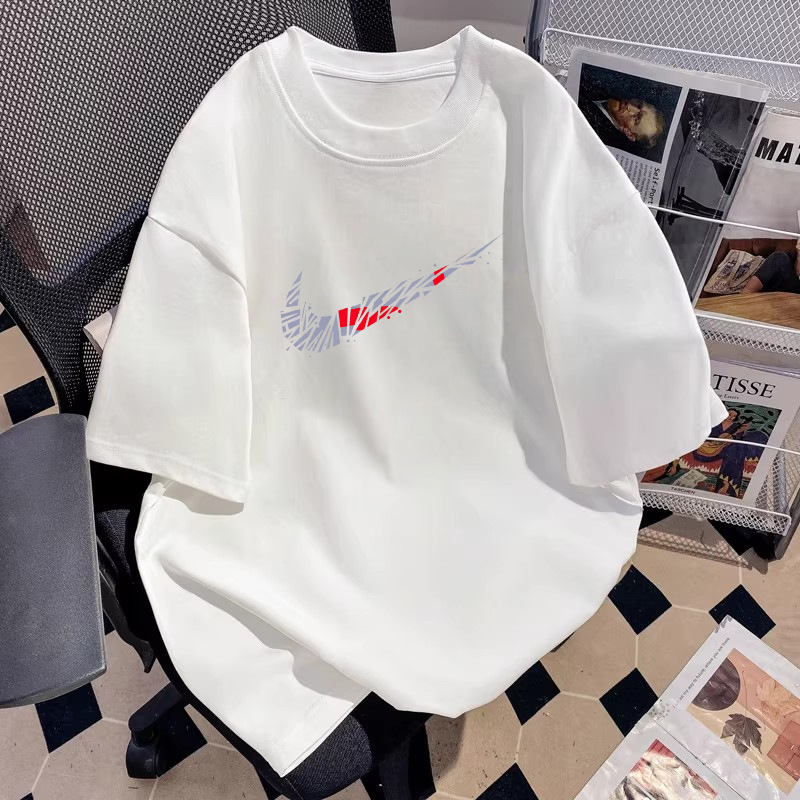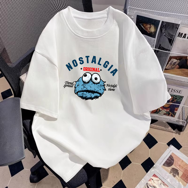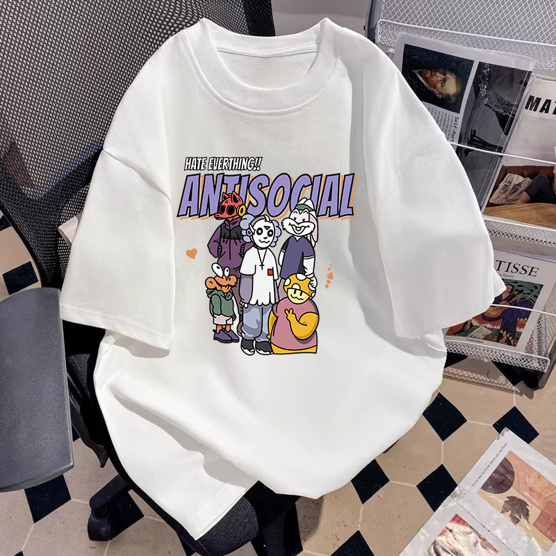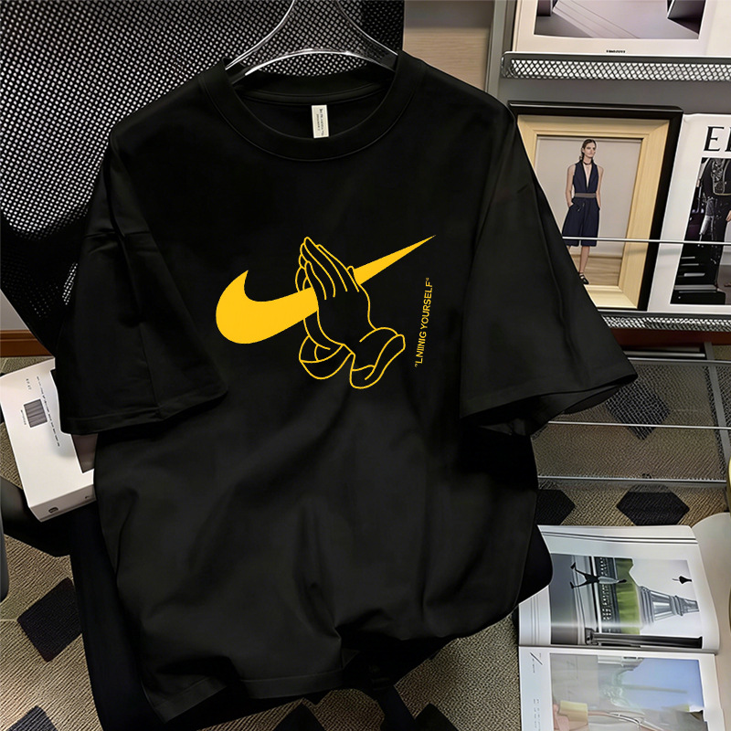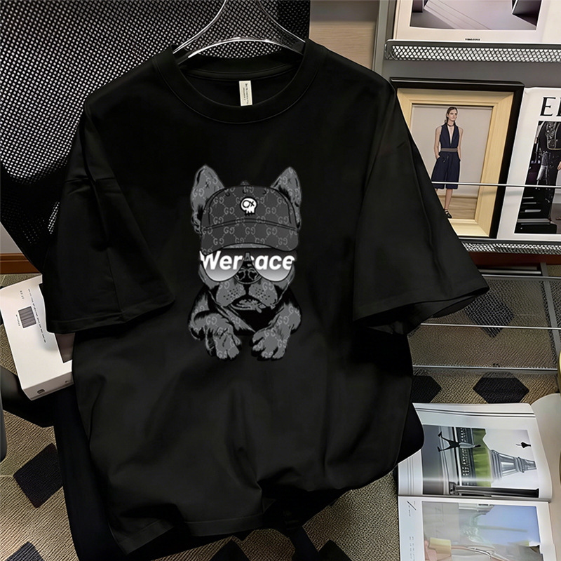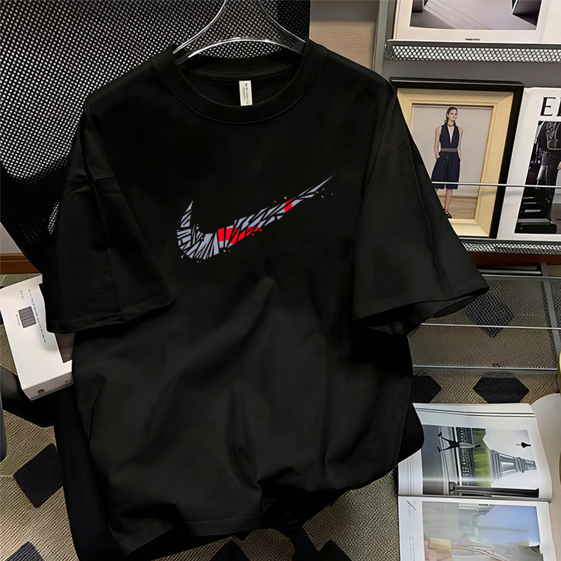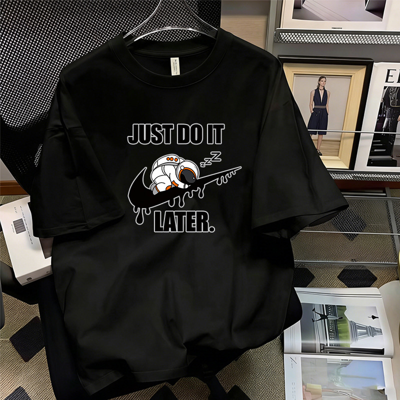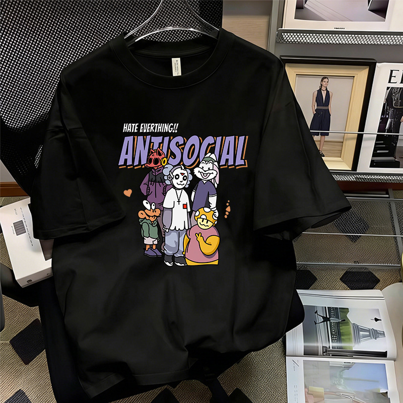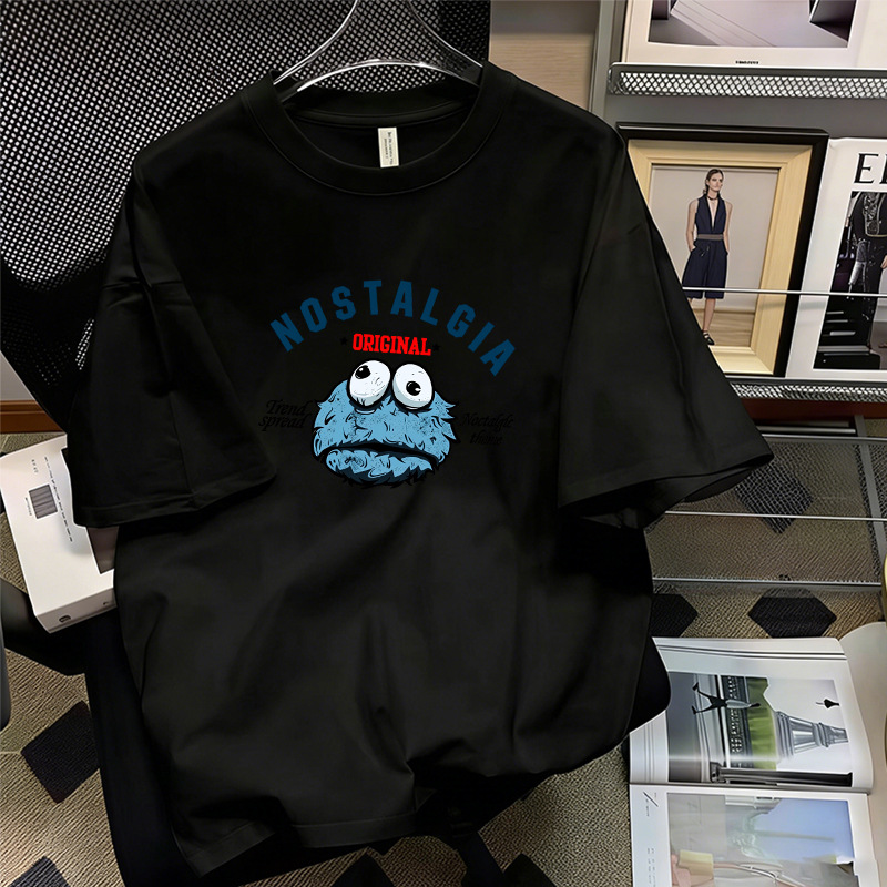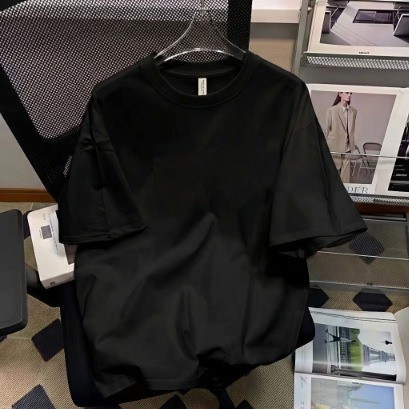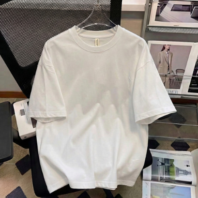 厂家直销落肩T恤男装宽松圆领印花刺绣高街潮流打底上衣批发跨境