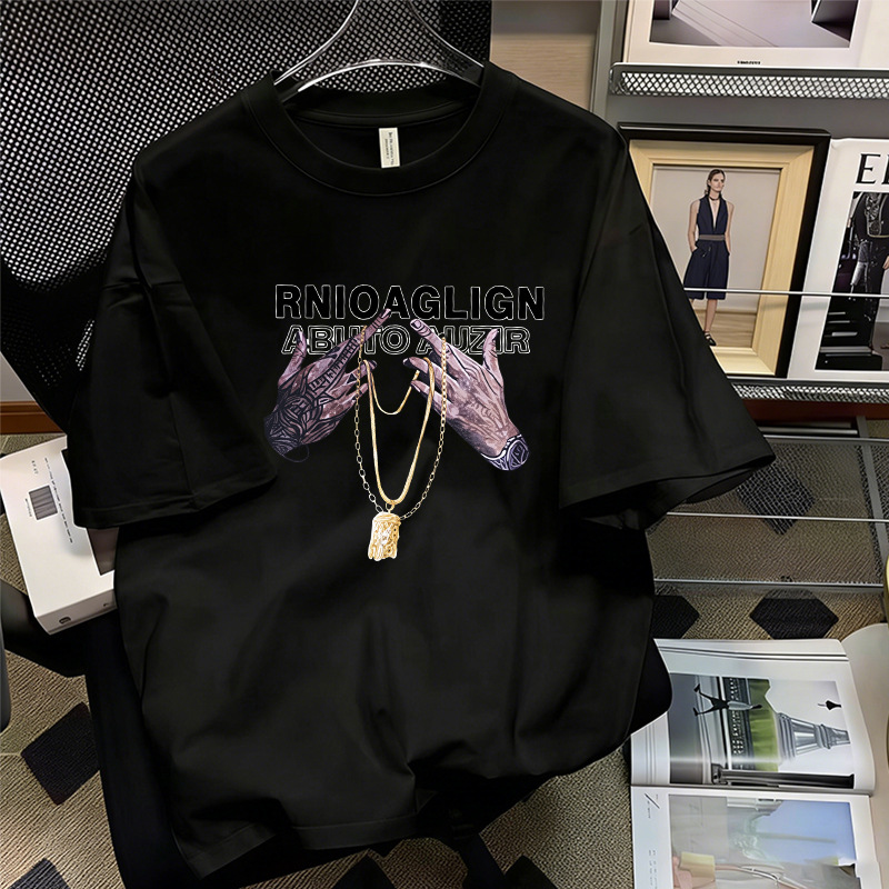 短袖双手金链黑色