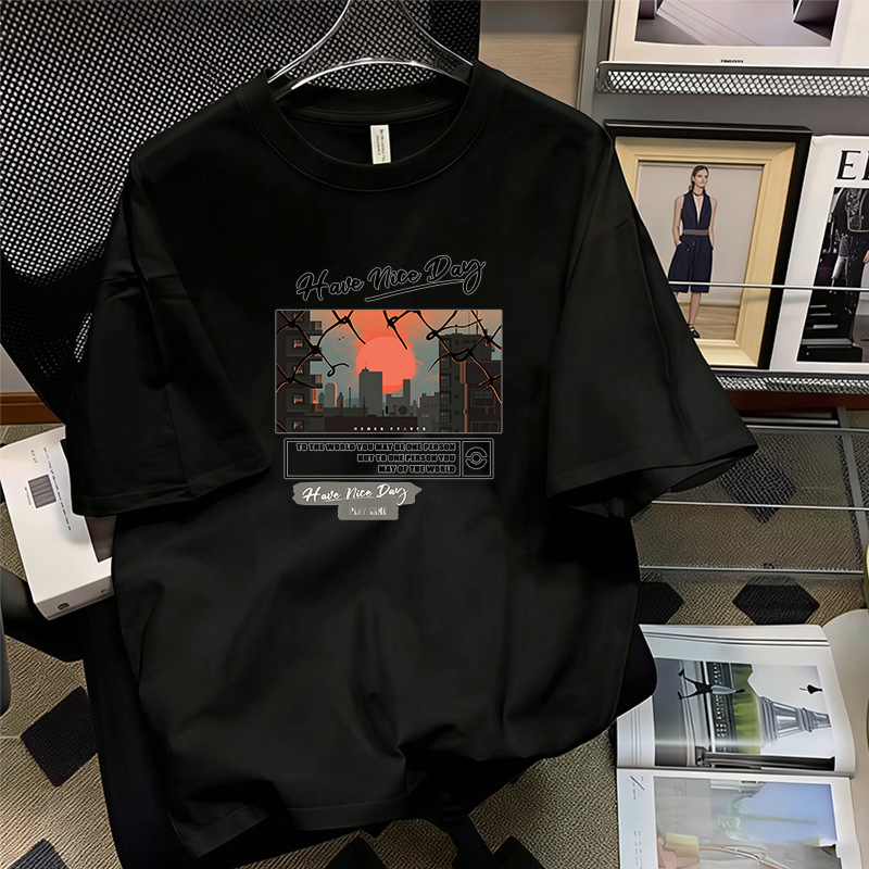 短袖城市日落黑色