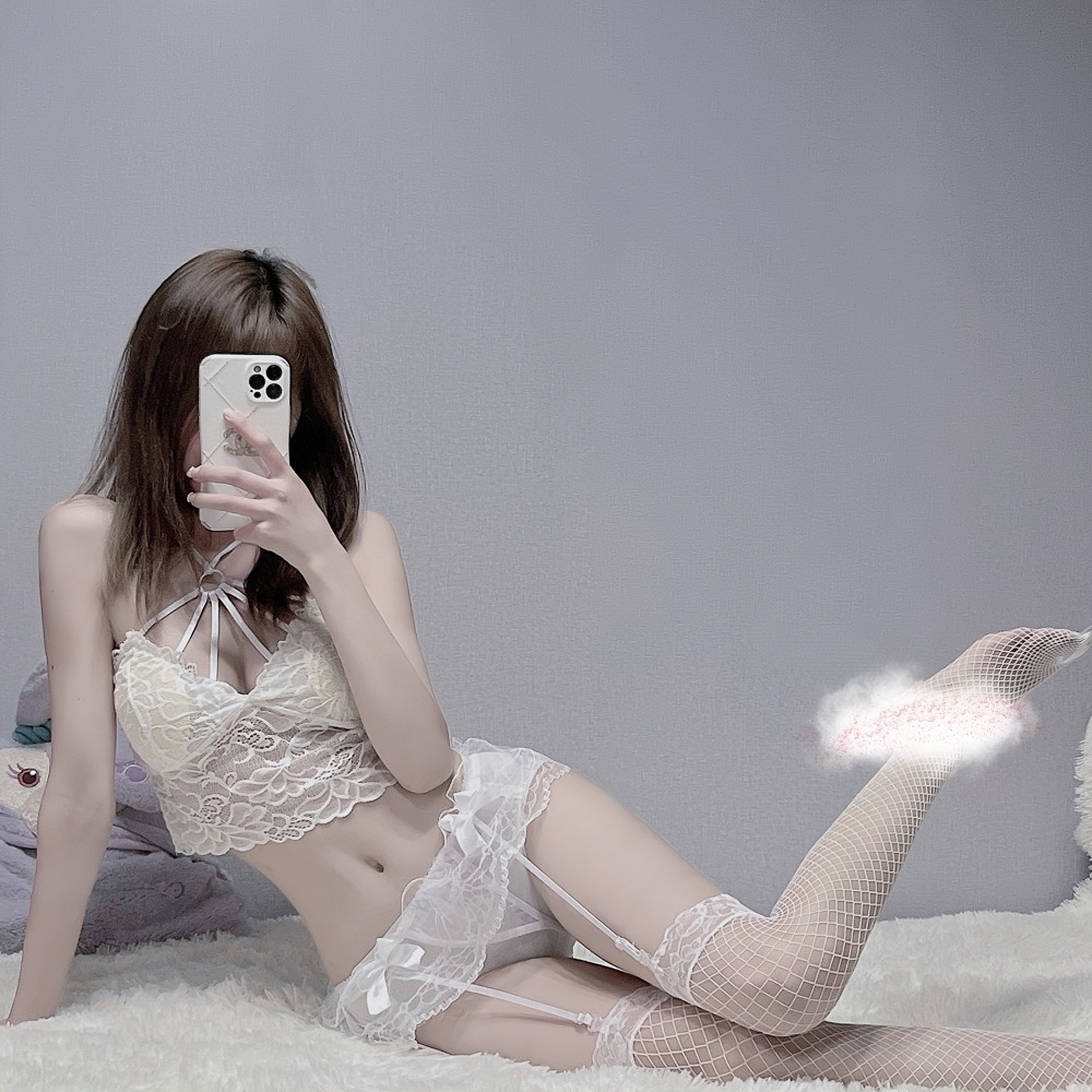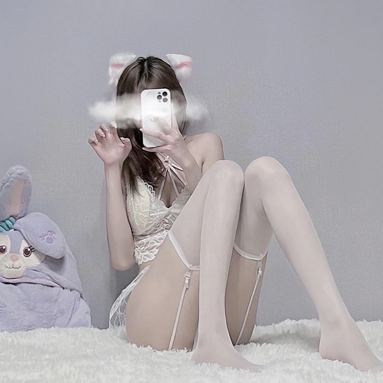 (白)花边上蝴蝶结丝袜+吊带扣+内裤