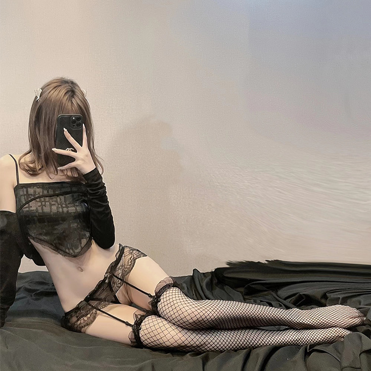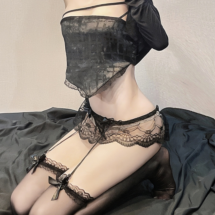 性感情趣内衣蕾丝内裤一体式吊带袜套装大码长筒吊带丝袜开裆网袜