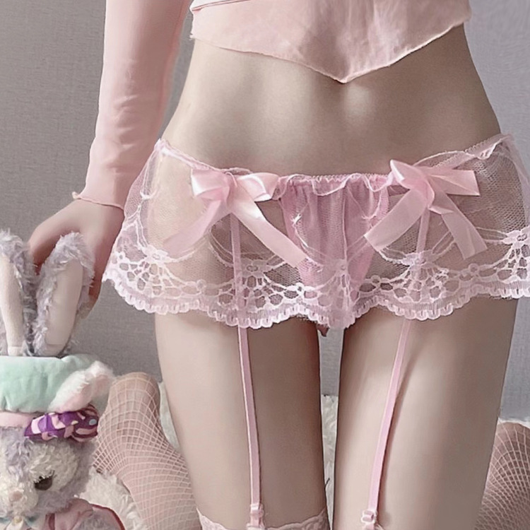 【粉】波点珍珠内裤+吊袜带+丝袜