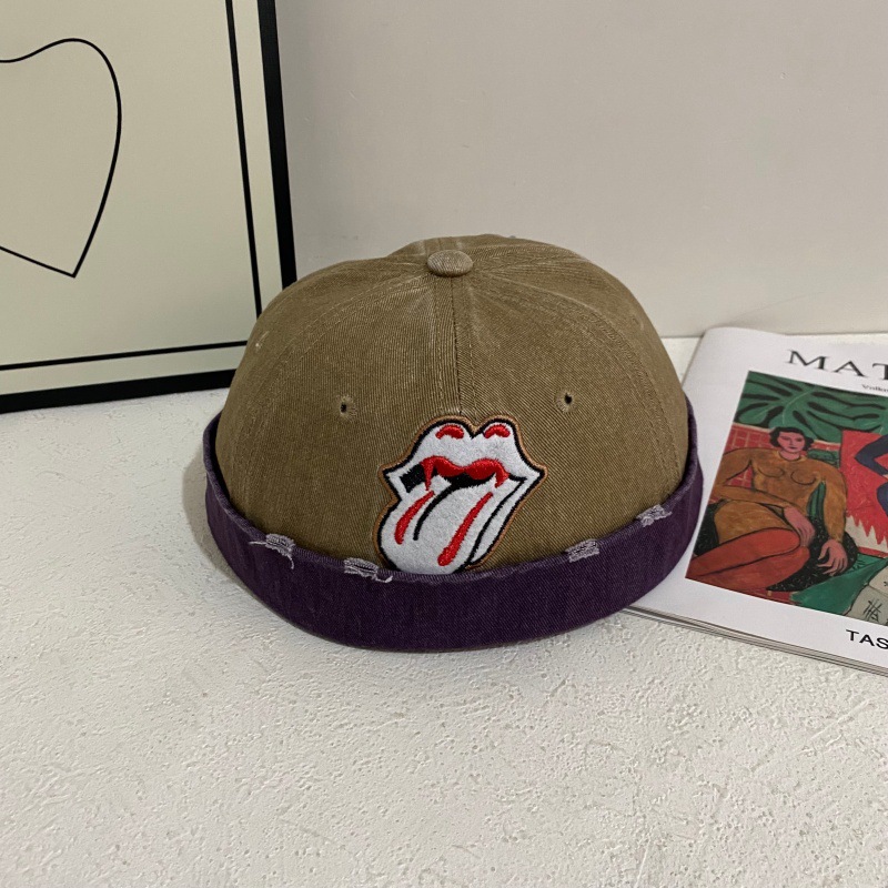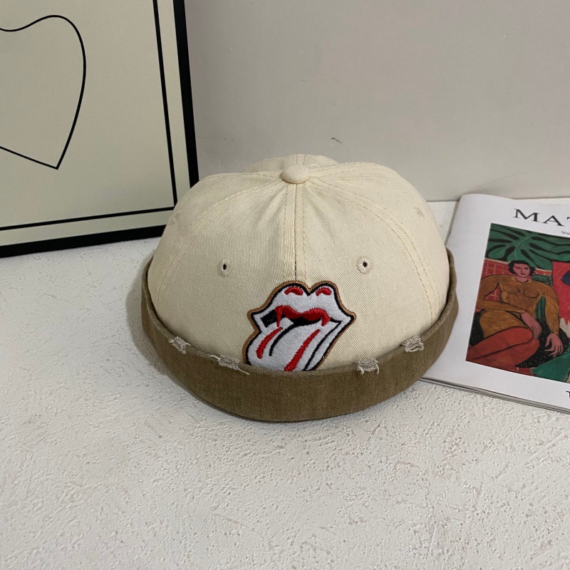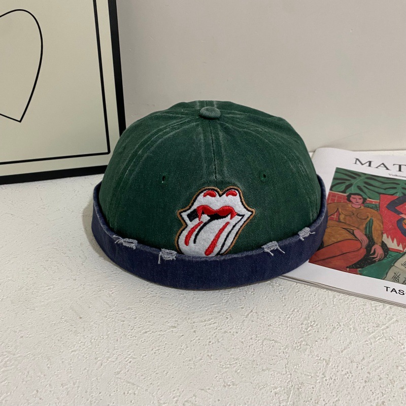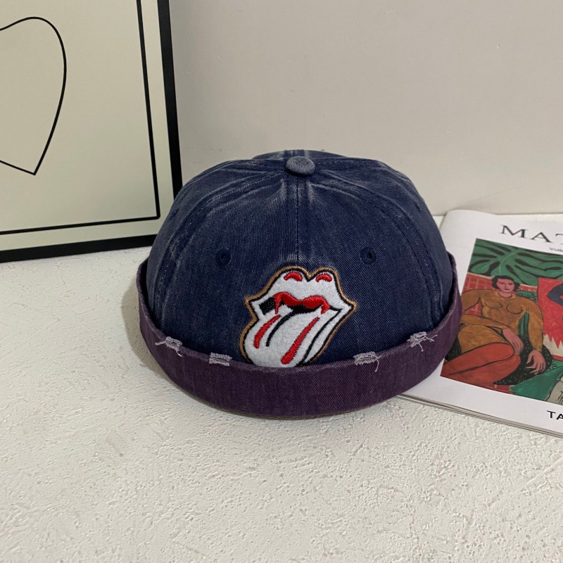 新款舌头雅痞复古牛仔瓜皮帽男女无檐百搭圆顶个性街舞嘻哈地主帽