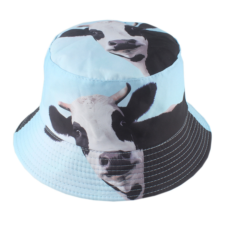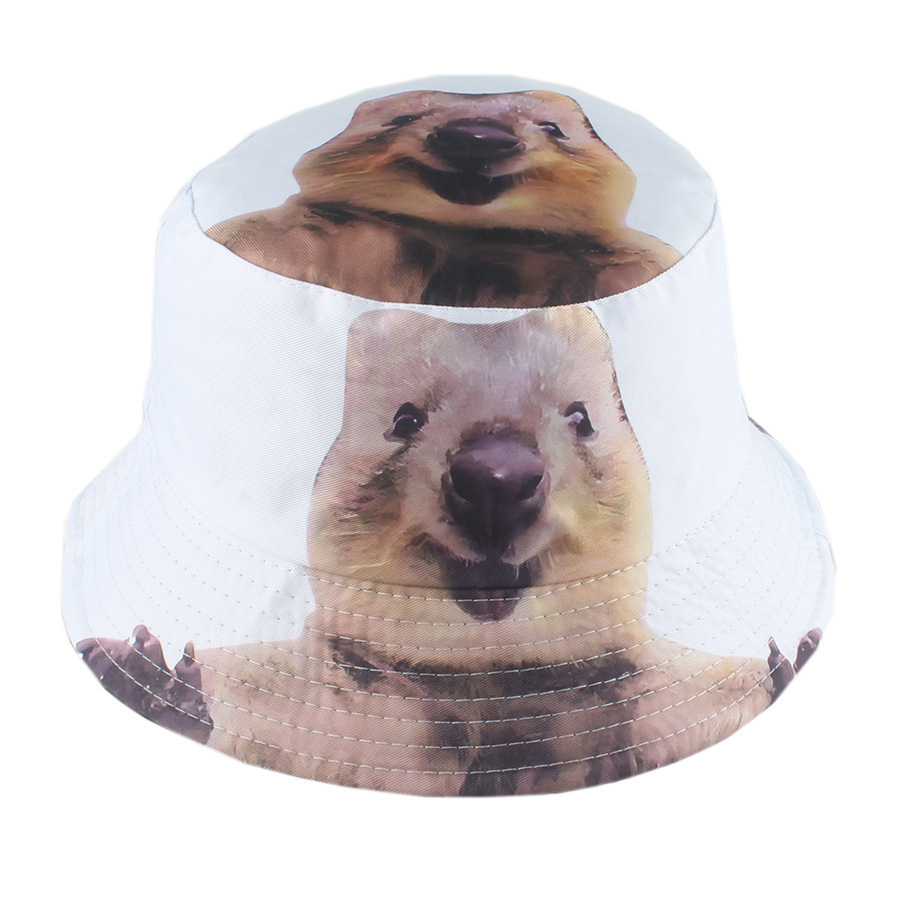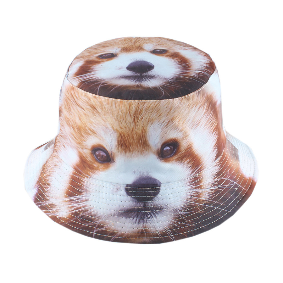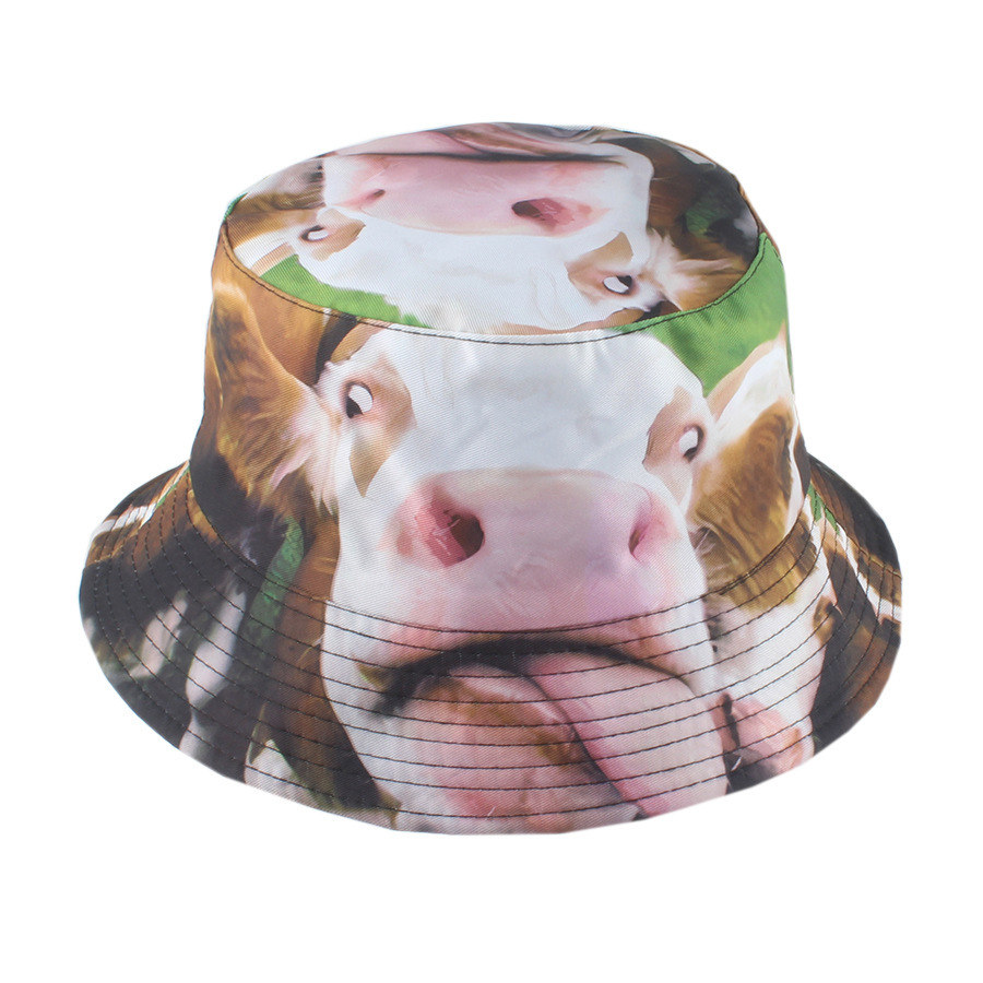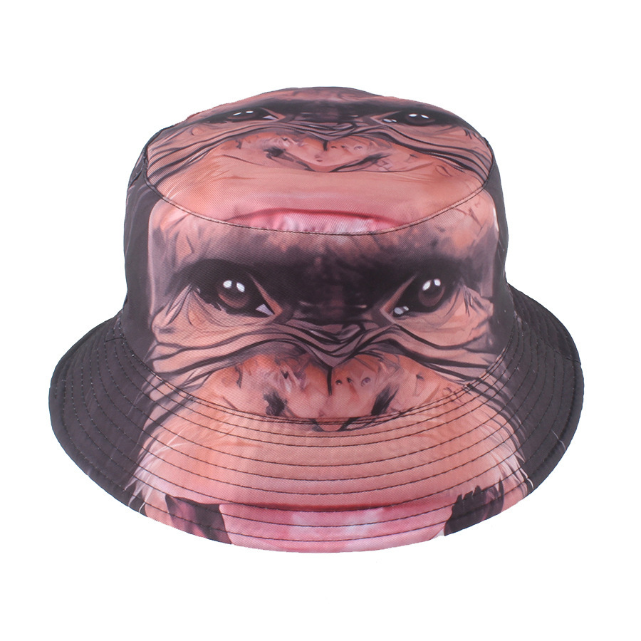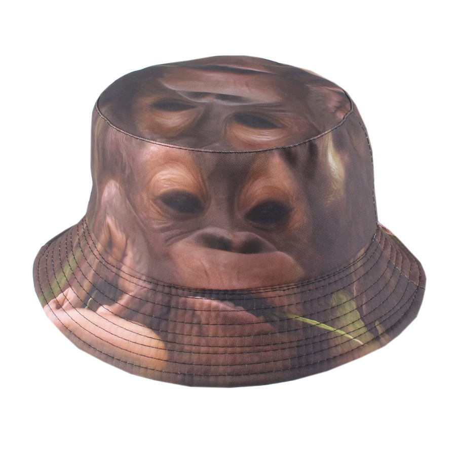 3D动物印花渔夫帽卡通猩猩狗狗牛头盆帽跨境热销男女遮阳帽