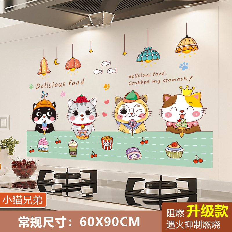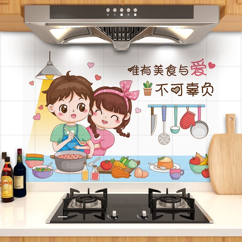 厨房防油贴纸灶台防水防火耐高温瓷砖墙纸油烟机墙壁加厚自粘定制
