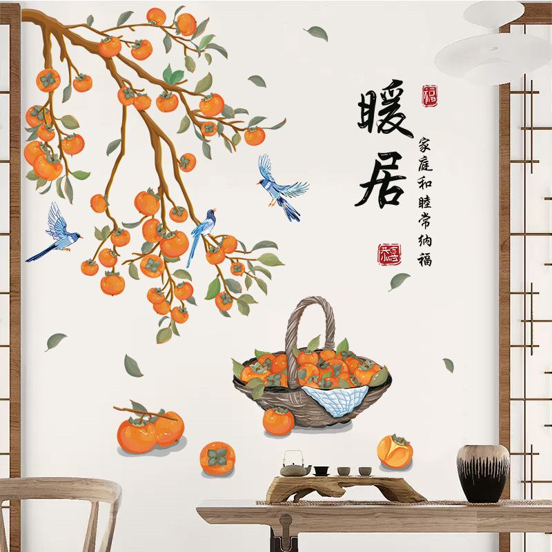 喜鹊墙贴自粘玄关走廊墙面美化装饰新中式拼贴画客厅餐厅定制贴纸