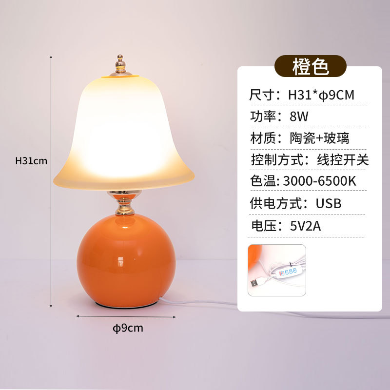 陶瓷法式奶油台灯蘑菇客厅网红少女led灯装饰温馨氛围卧室小夜灯