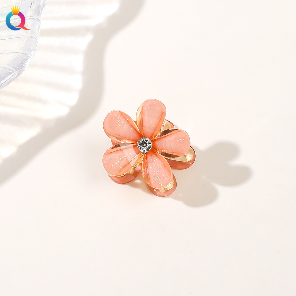 水晶小花夹-粉色