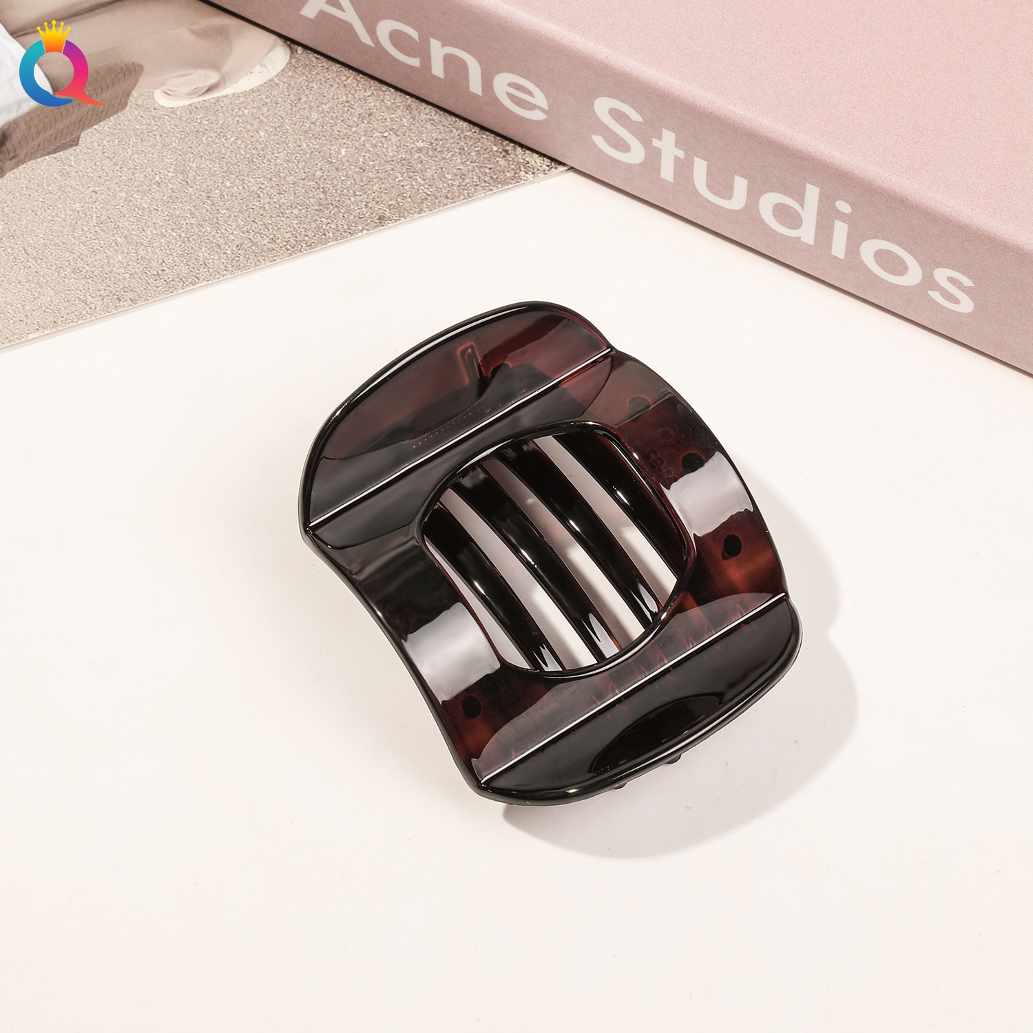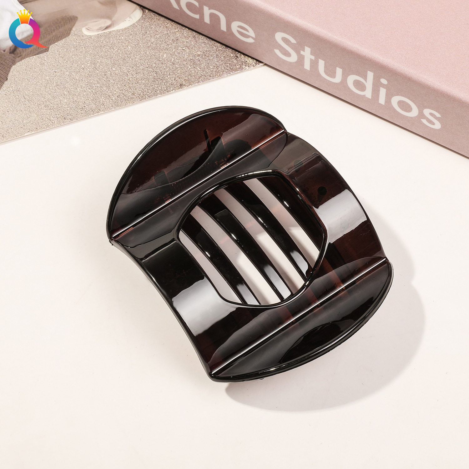 PC元宝发夹-7.5cm亮面深棕