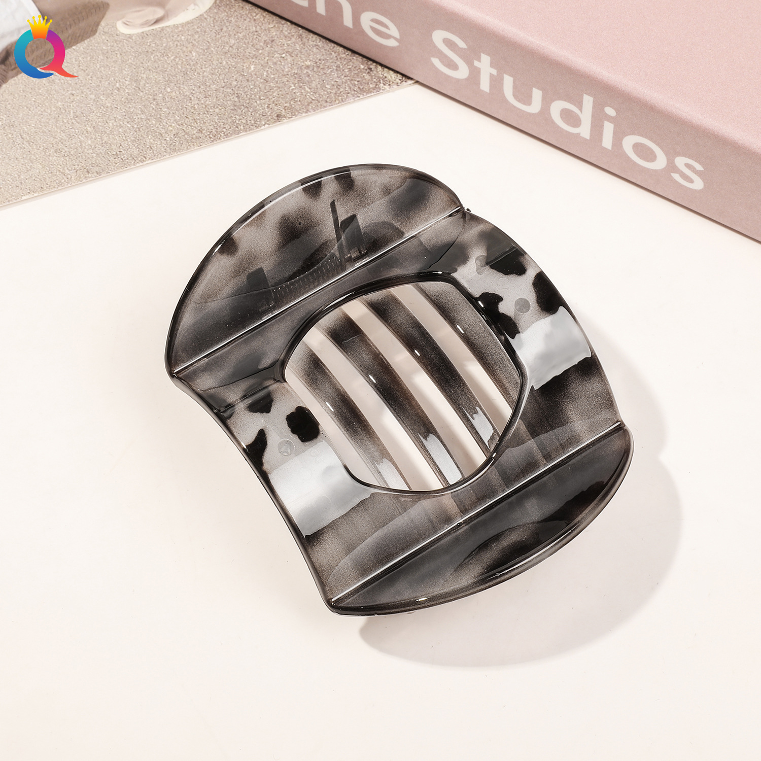 PC元宝发夹-7.5cm亮面灰豹