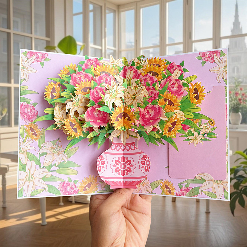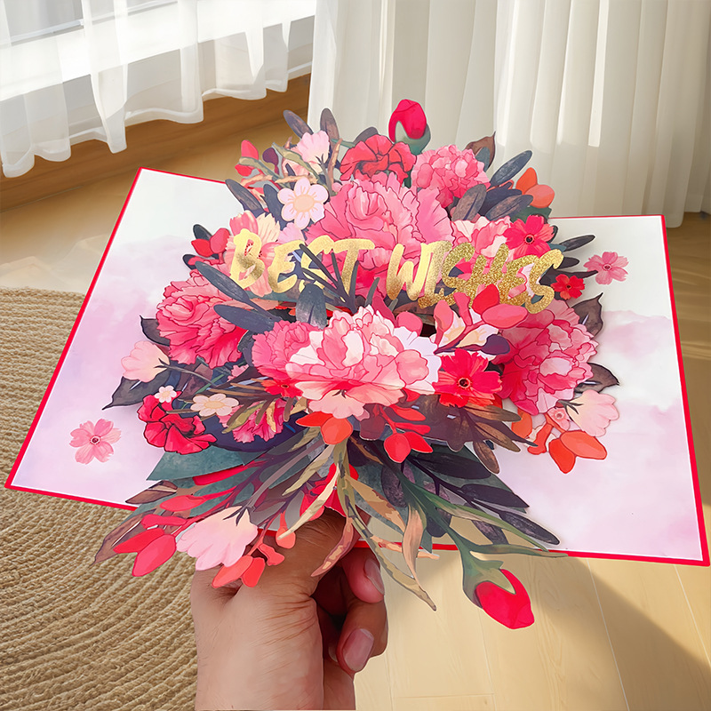教师节母亲节立体贺卡3D花束生日卡片感恩节送老师礼物跨境
