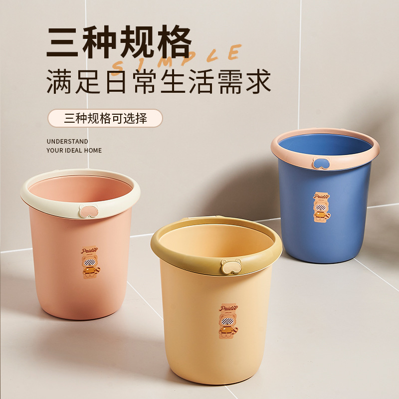 T27创意客厅垃圾桶家用高级感派多熊压圈纸篓萌趣可爱卡通收纳桶