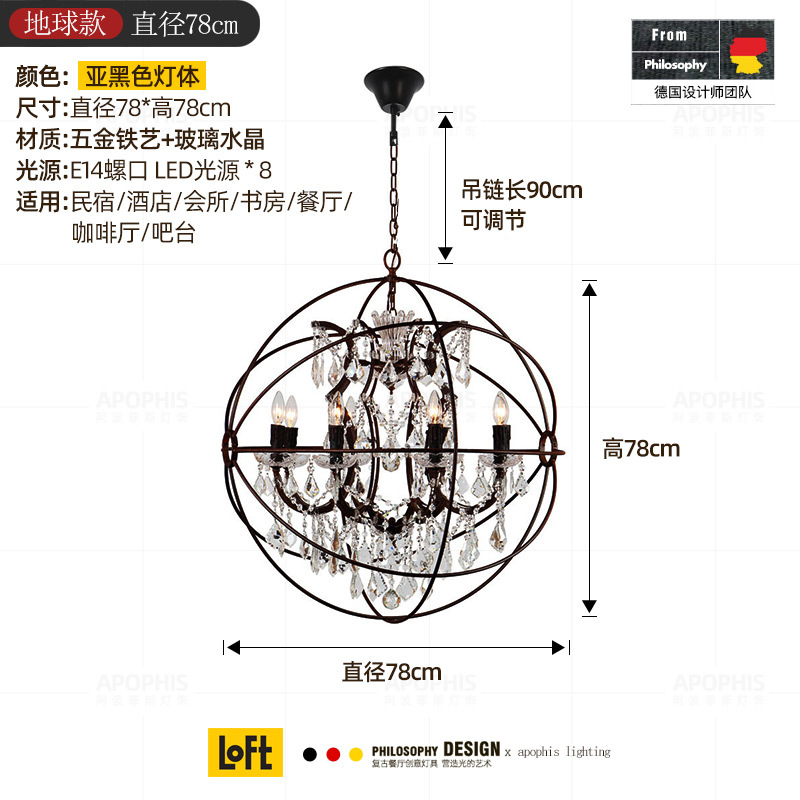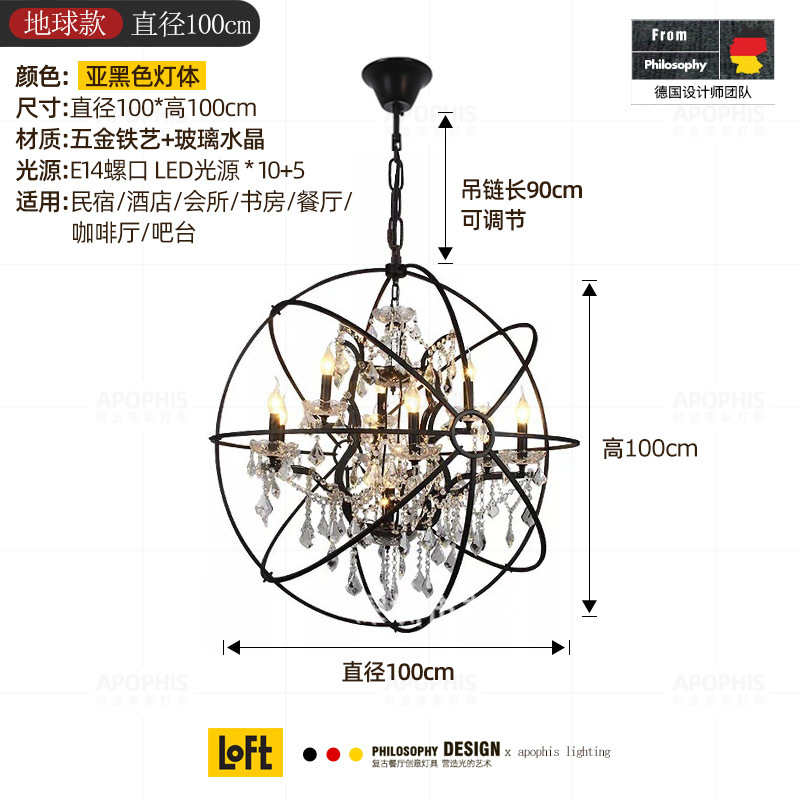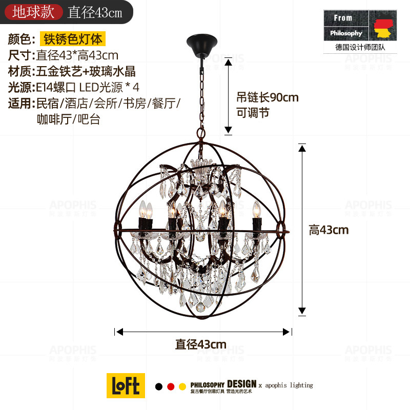 Loft美式民宿咖啡馆西餐厅复古蜡烛水晶鸟笼吊灯设计师服装店灯具
